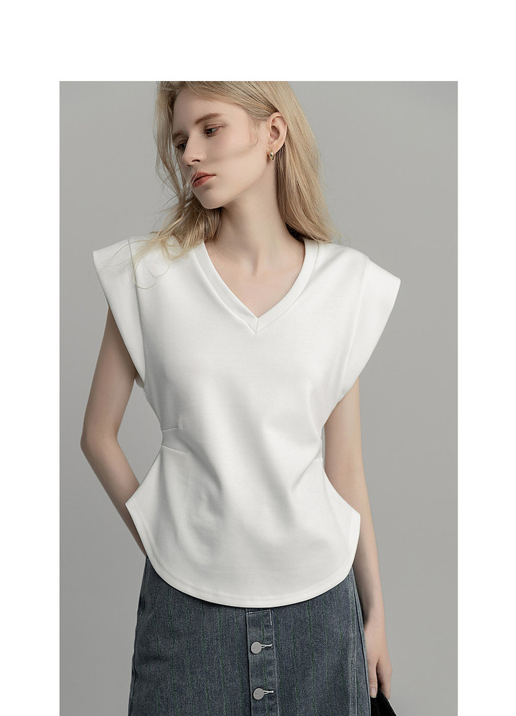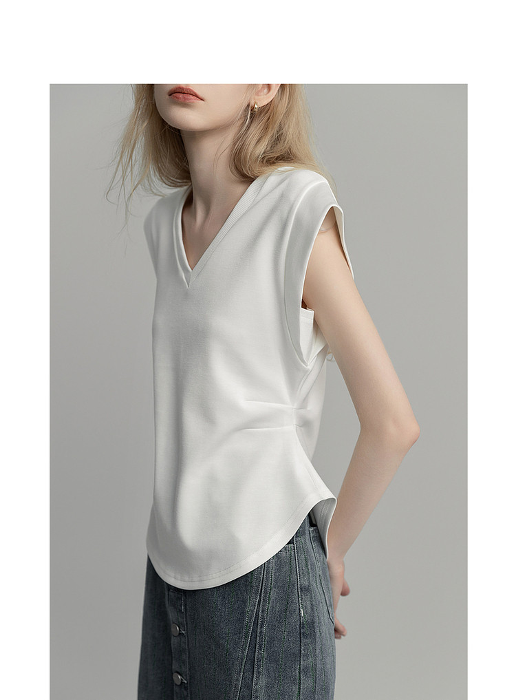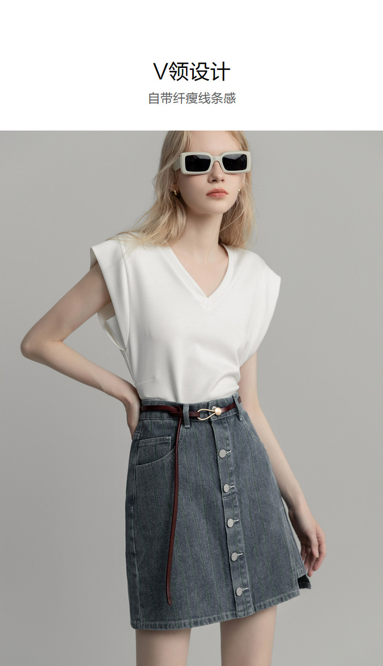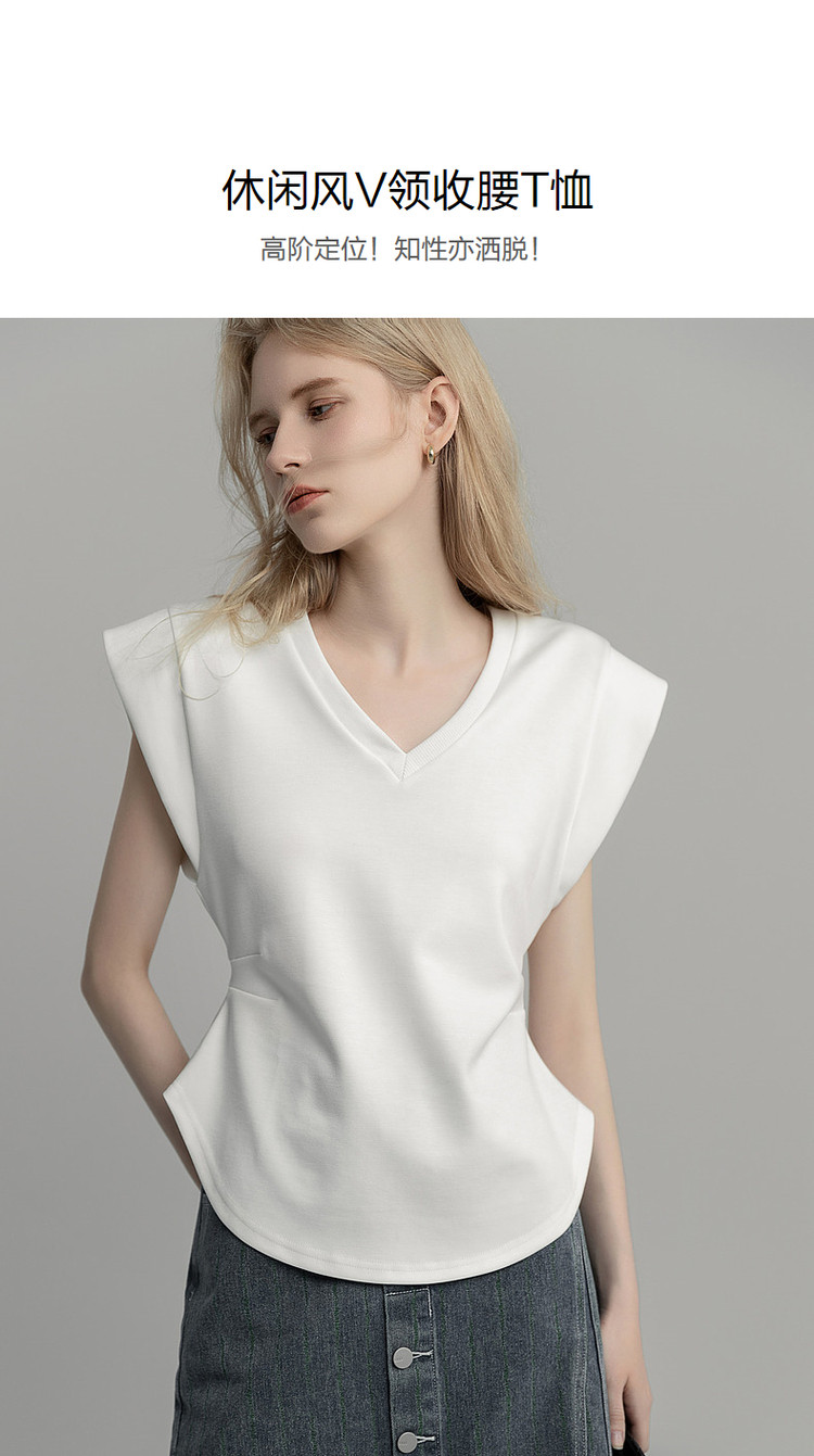 商品名称:【纯欲轻薄V领女式t恤】夏季修身简约无袖t恤女 109633