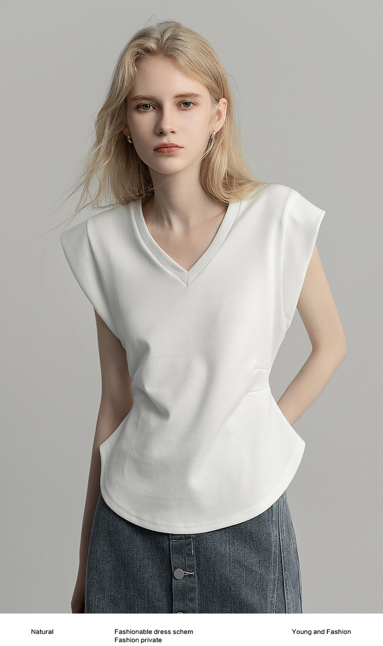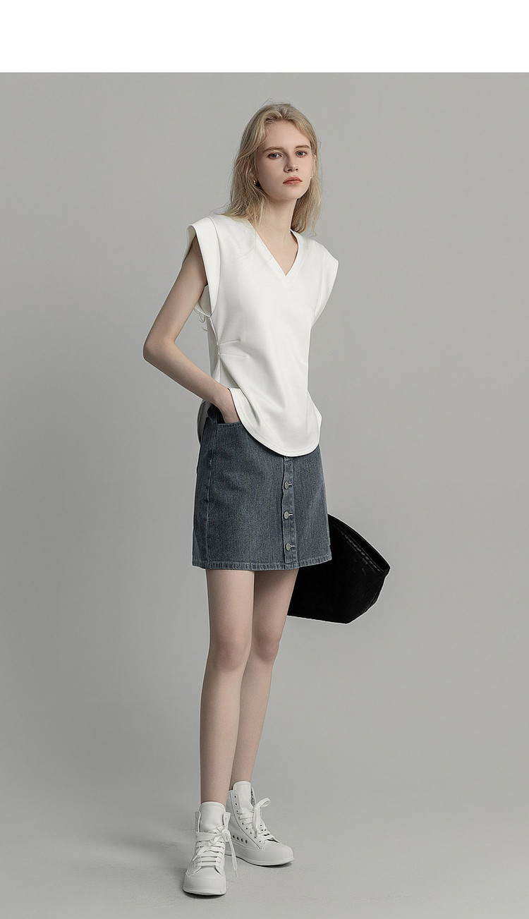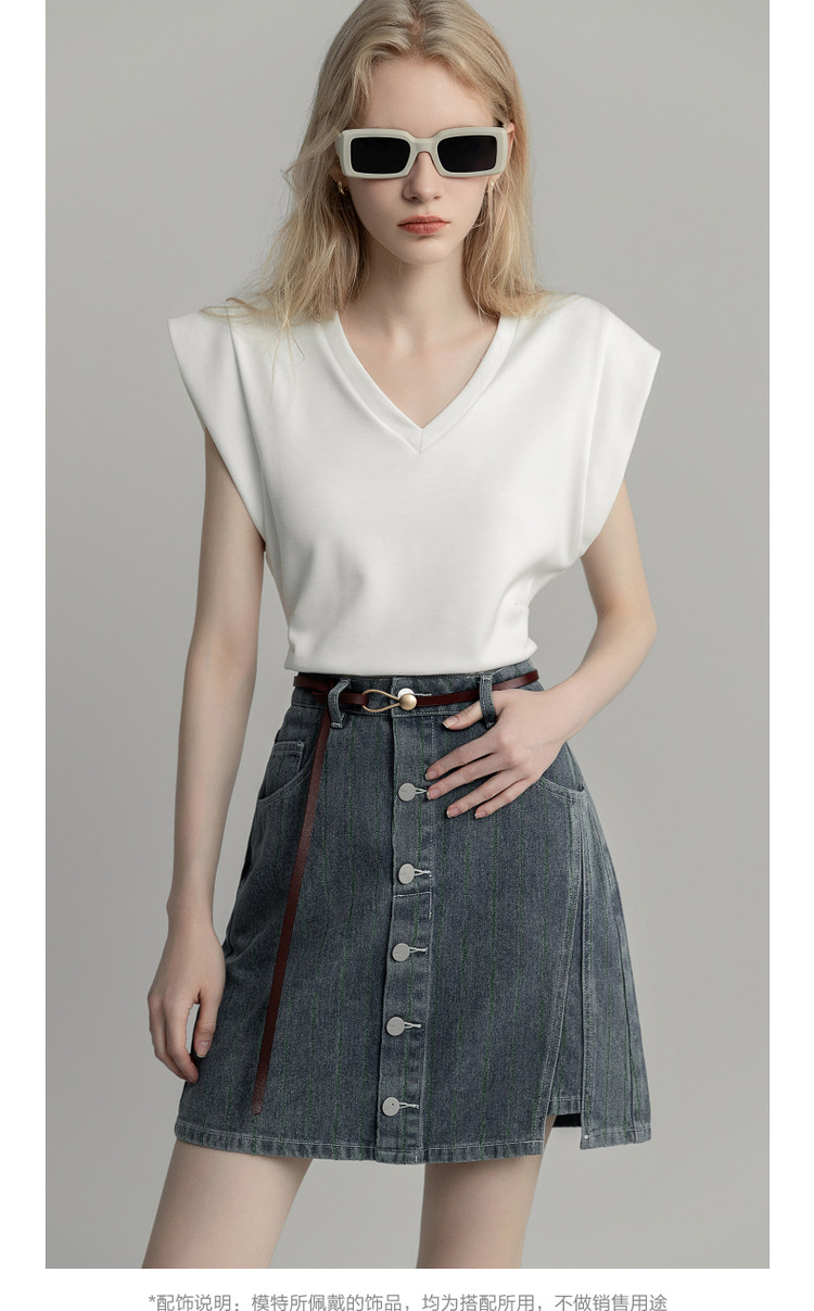 商品名称:【纯欲轻薄V领女式t恤】夏季修身简约无袖t恤女 109633