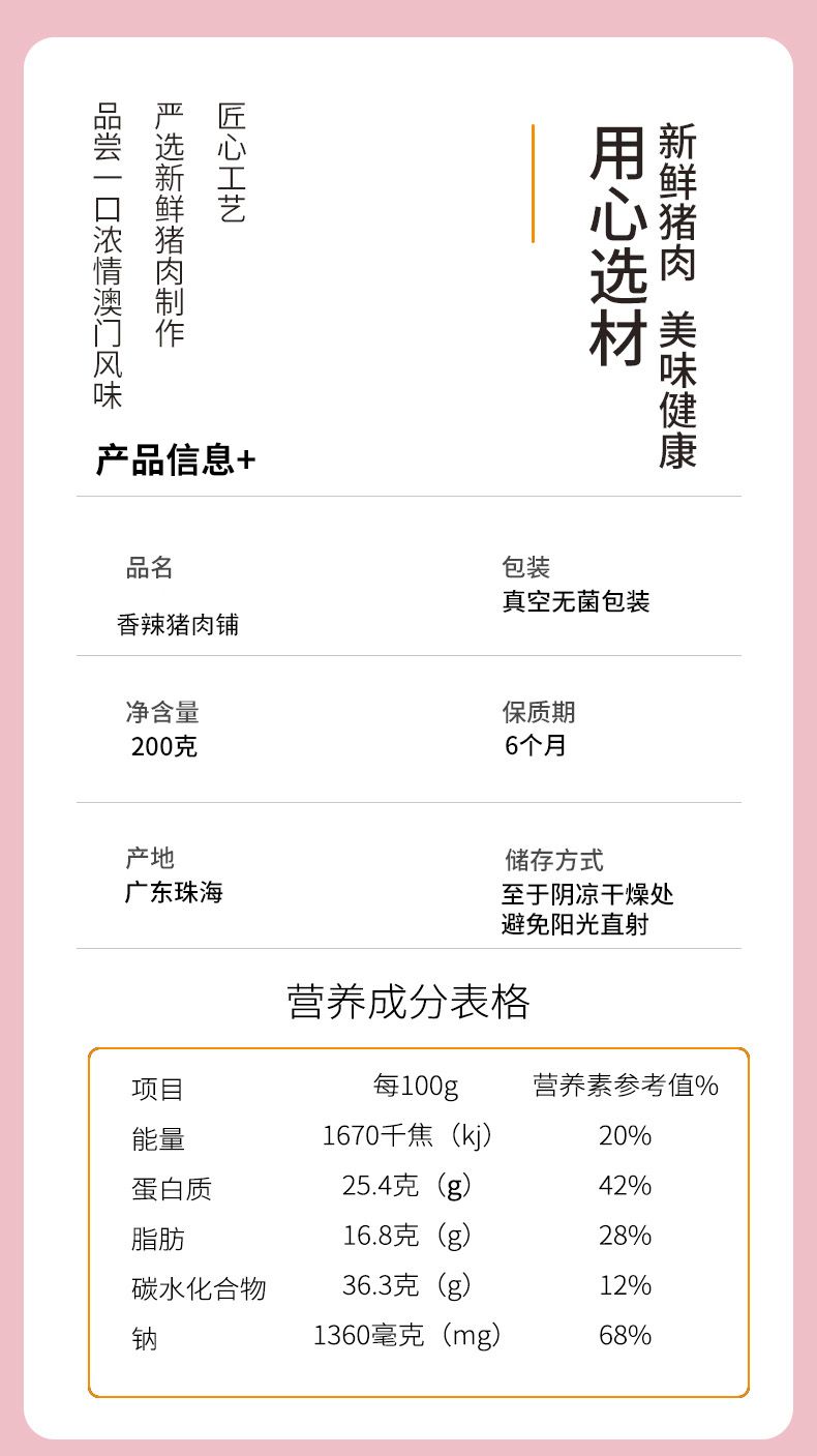 商品名称:西点港澳门风味香辣猪肉铺 200克*两盒 澳门特产传统礼盒礼包伴手礼送礼佳品