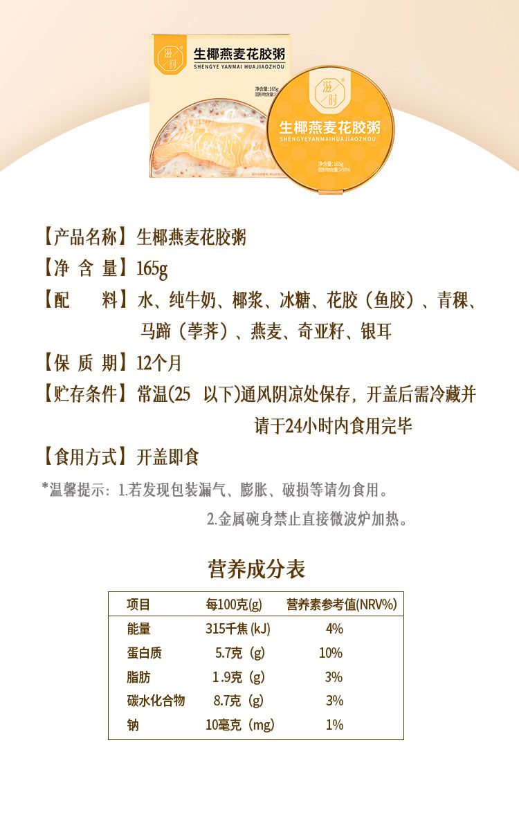 商品名称:滋时生椰燕麦花胶粥整条花胶165g*12碗组合装 滋养羹粥