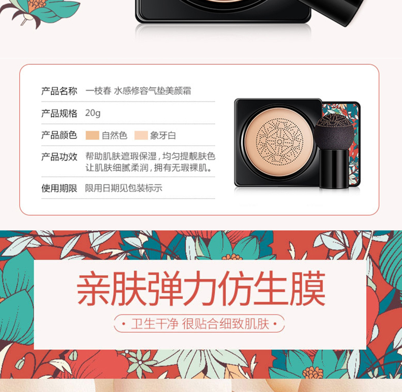 商品名称:一枝春水感修容气垫美颜霜 遮瑕自然裸妆 20g