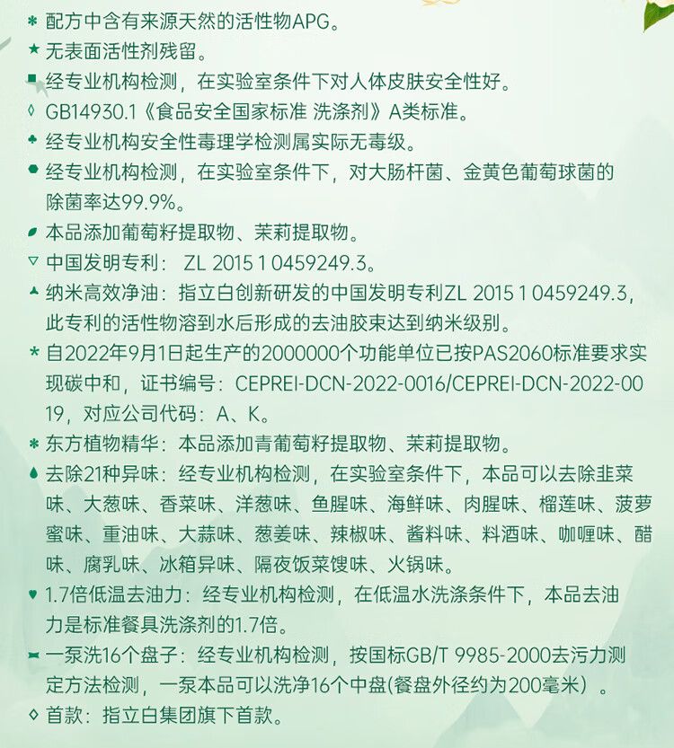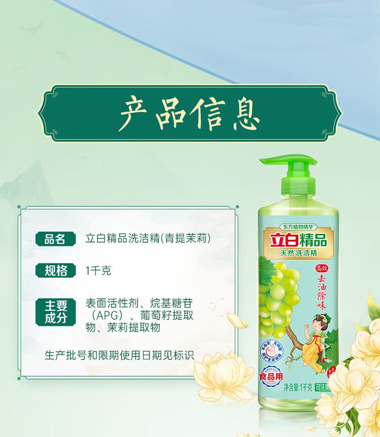商品名称:立白 精品天然洗洁精(青提茉莉)1kg