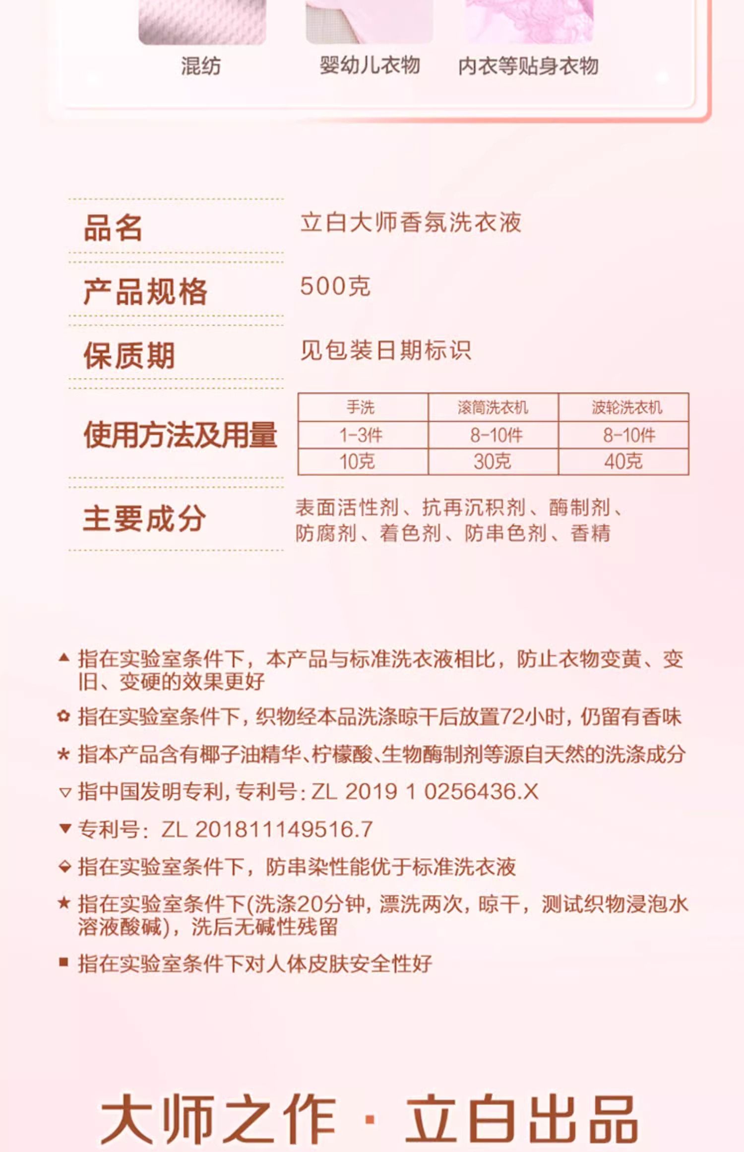 商品名称:立白大师香氛天然洗衣液(梦幻格拉斯玫瑰)500克