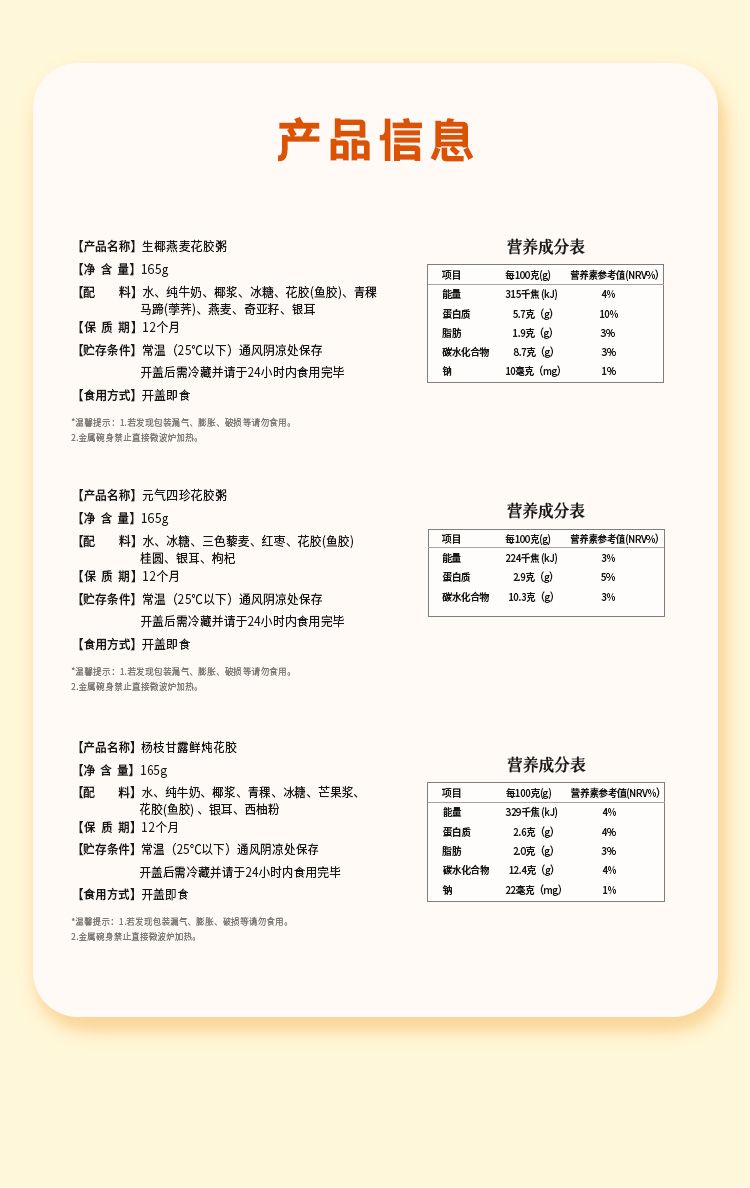 生椰燕麦花胶粥(165g*4碗) + 元气四珍花胶粥(165g*4碗) + 杨枝甘露鲜炖花胶粥(165g*4碗)