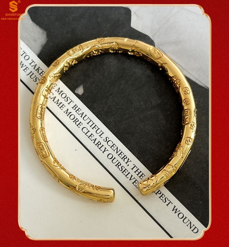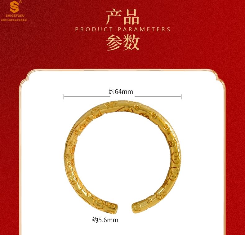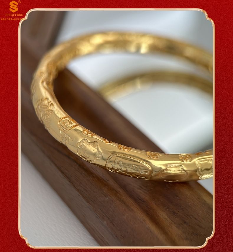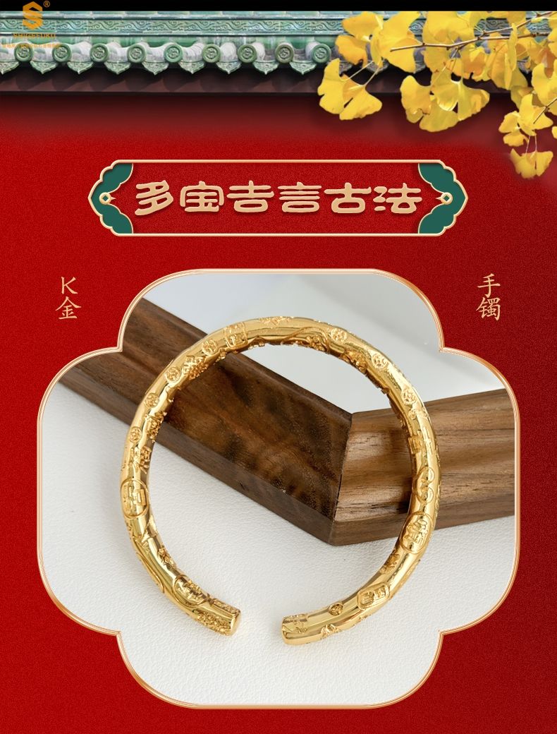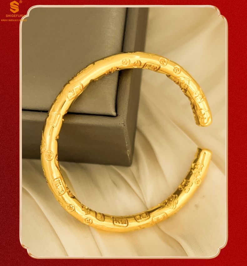 商品名称:香港周六福黄金钻石首饰多宝吉言古法精雕开口K金手镯