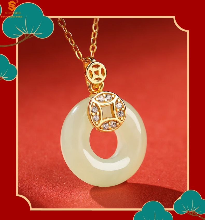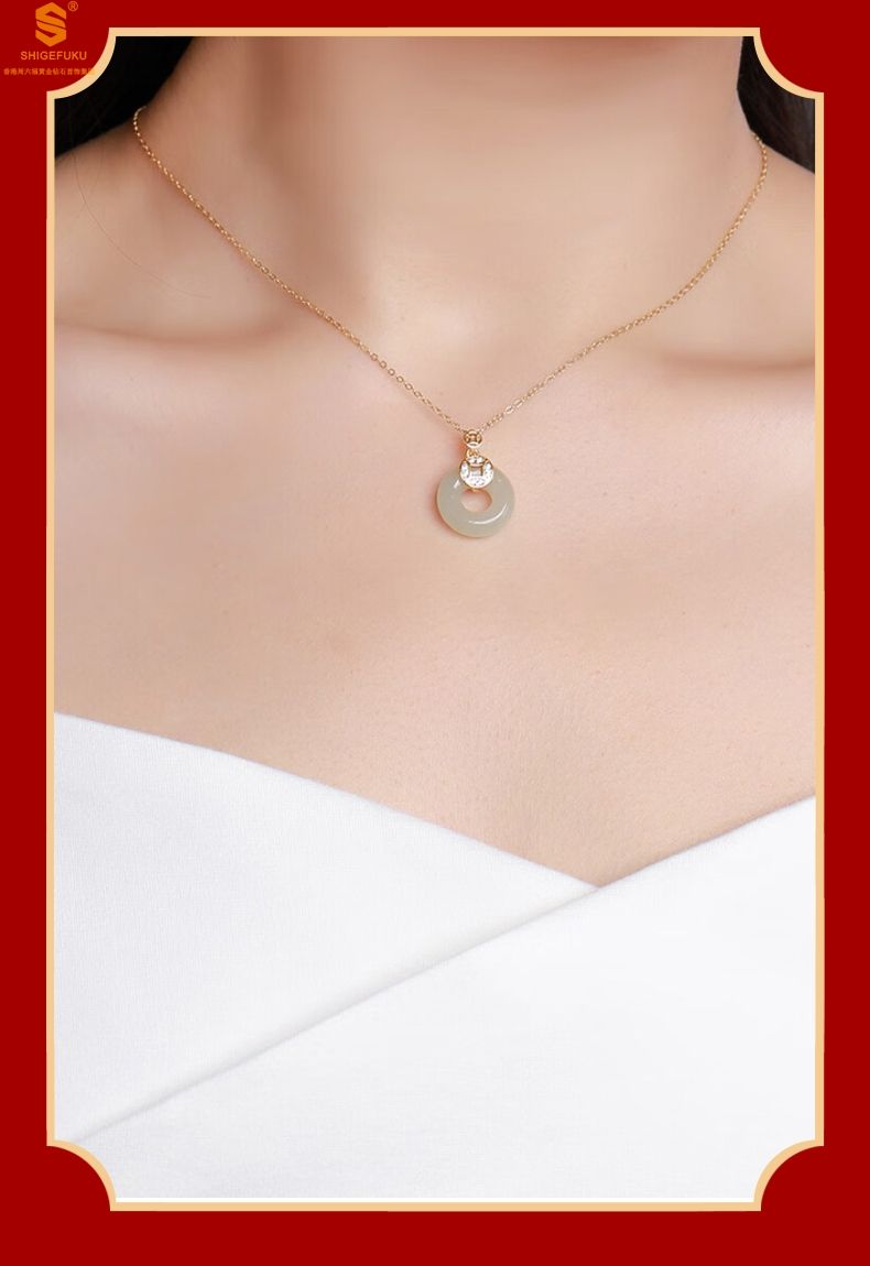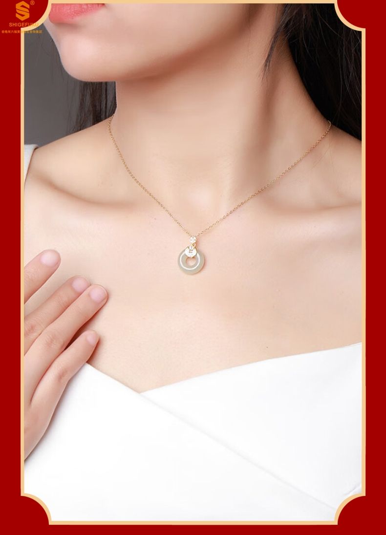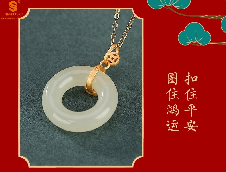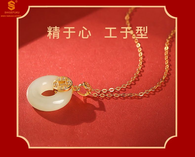 香港周六福黄金钻石首饰古法银镶嵌和田玉满钻钱币平安扣