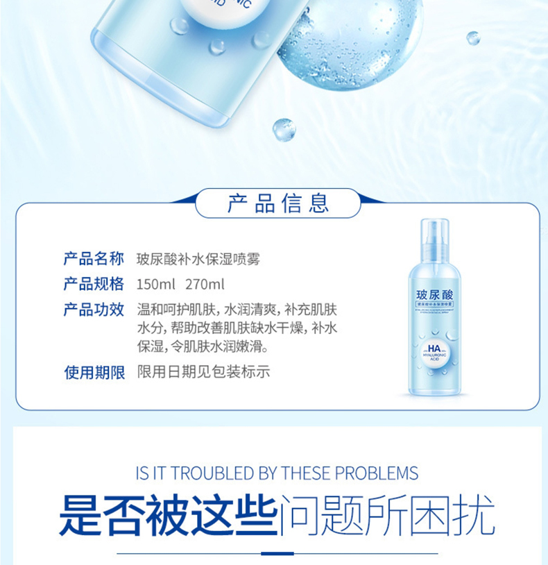 商品名称:一枝春玻尿酸补水保湿喷雾 水润嫩滑清爽150ml/270ml