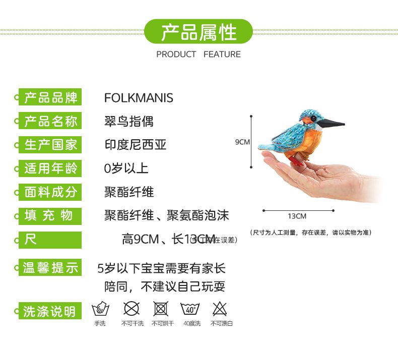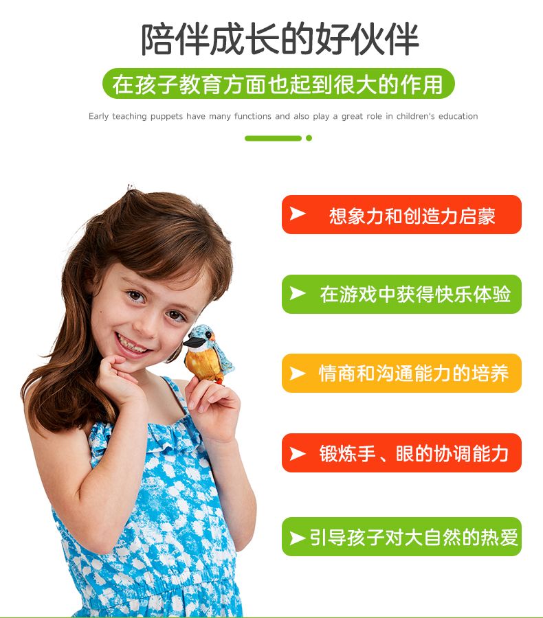 商品名称:福克曼尼斯/FOLKMANIS 仿真互动教育手偶翠鸟指偶