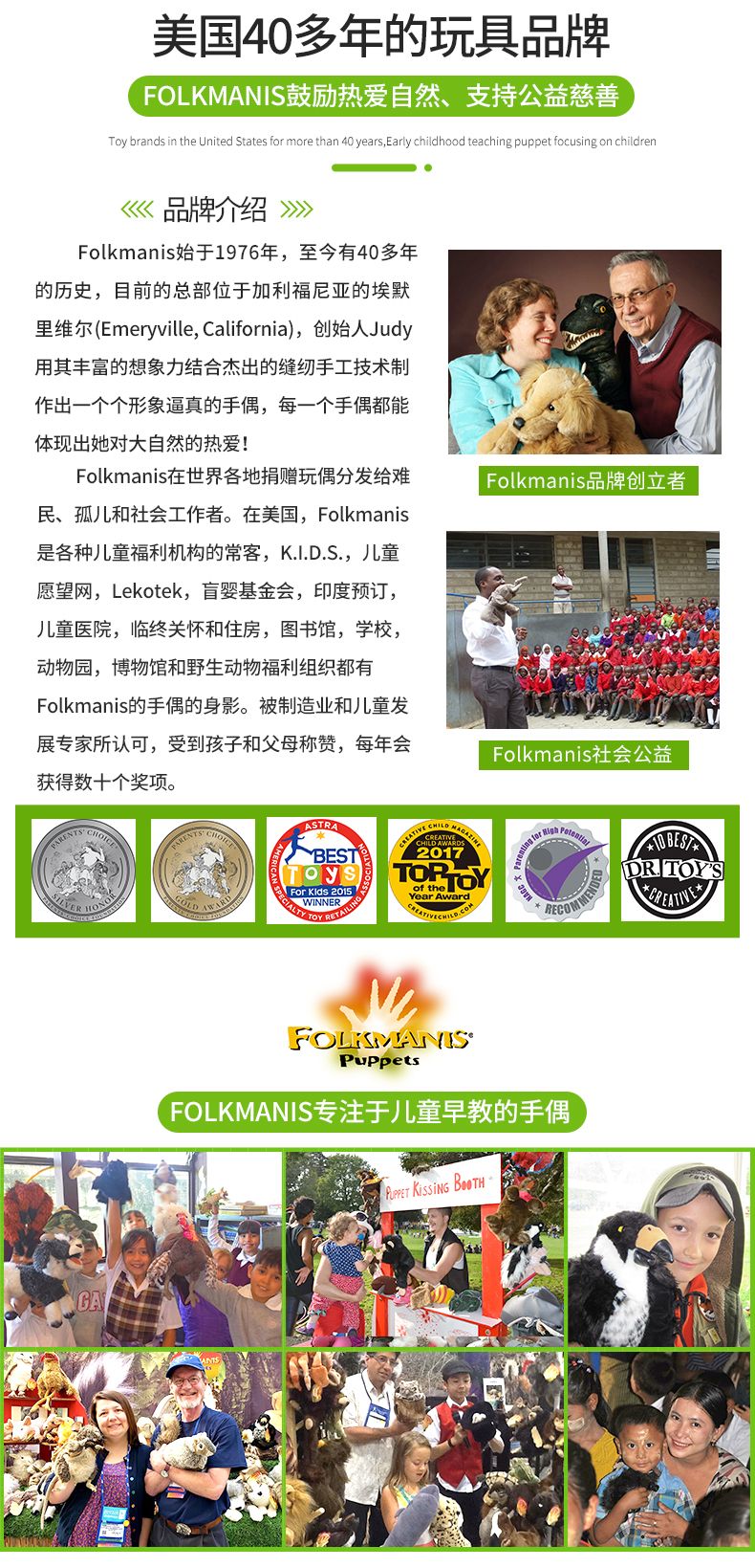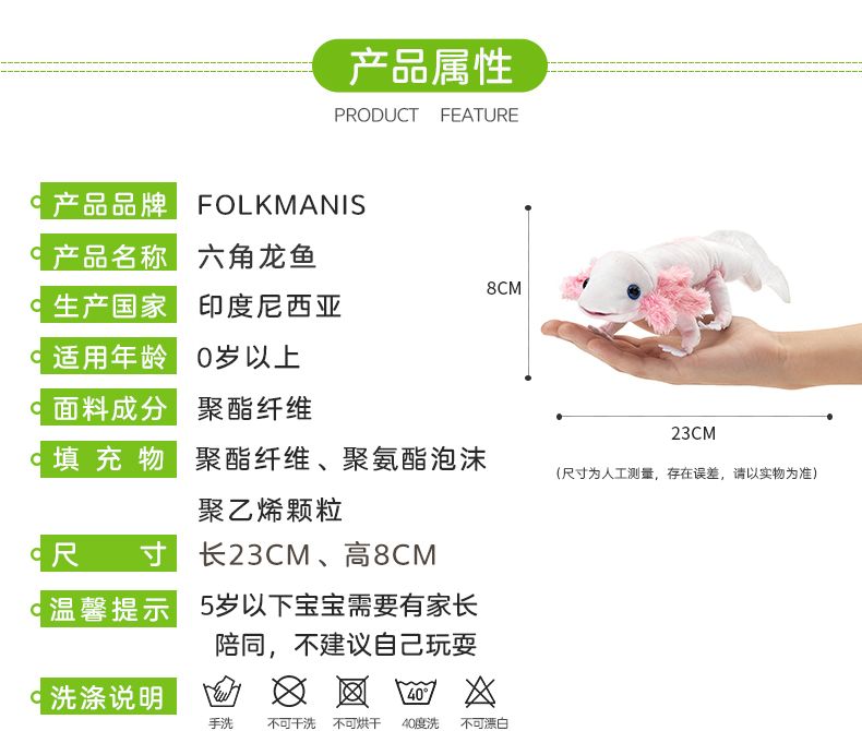 商品名称:福克曼尼斯/FOLKMANIS 仿真互动教育型六角龙鱼手偶 秋冬新款