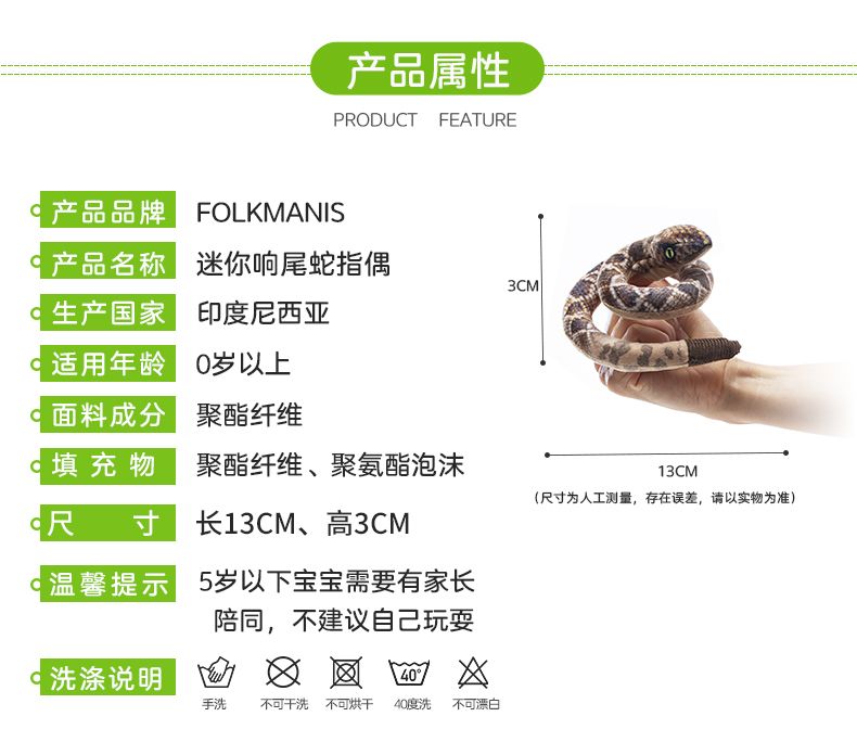商品名称:福克曼尼斯/FOLKMANIS 仿真互动教育型手偶迷你响尾蛇指偶 蛇年新款