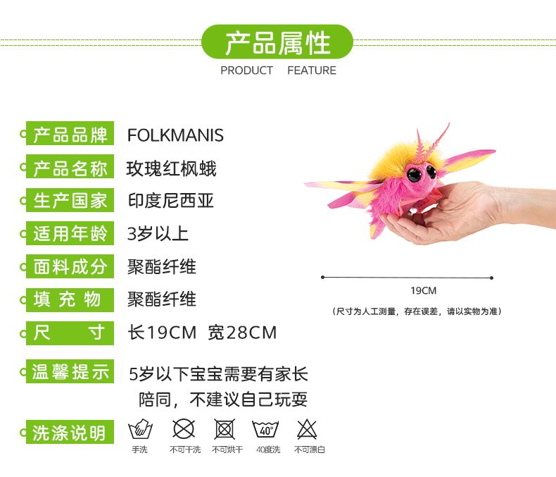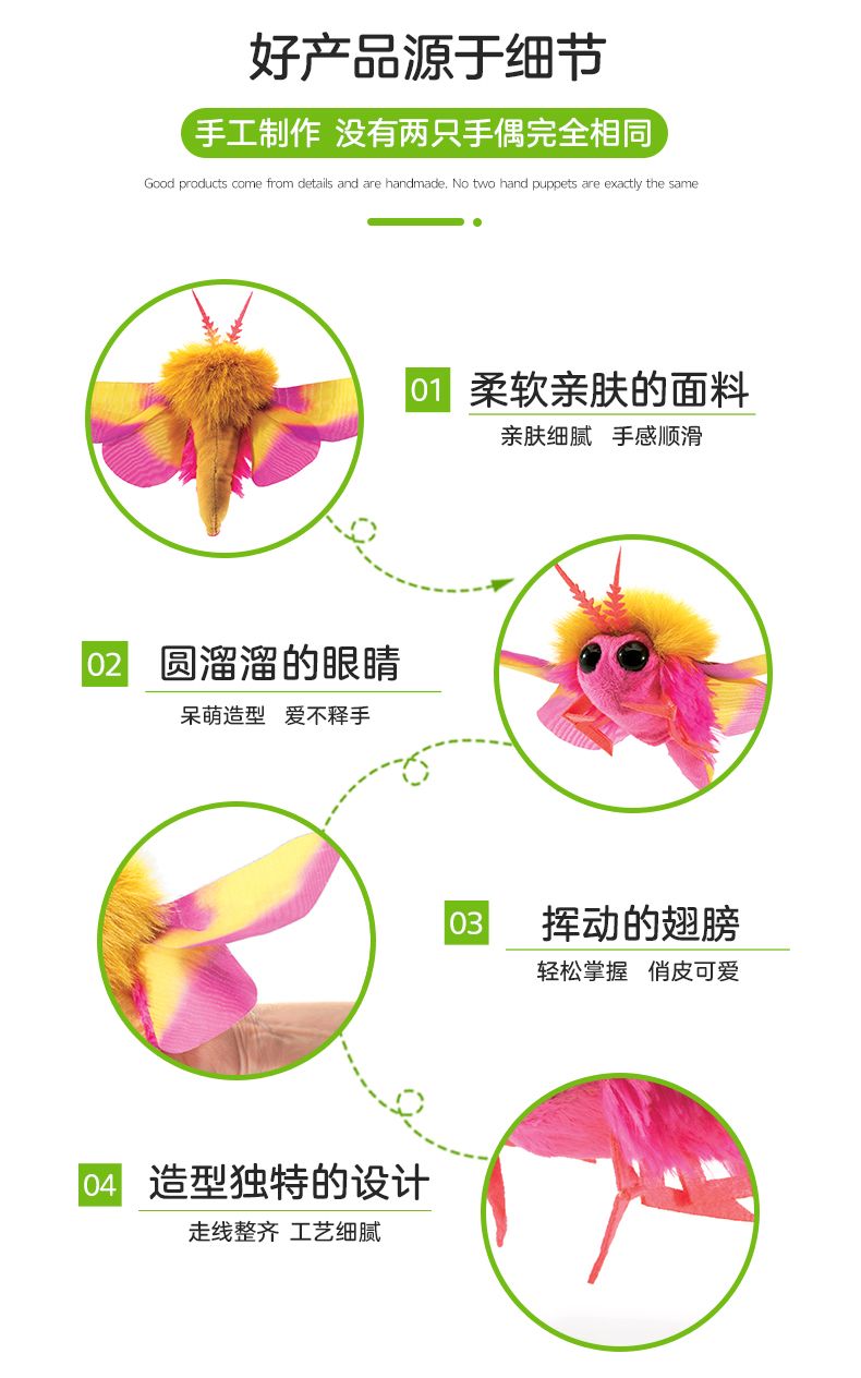 商品名称:福克曼尼斯/FOLKMANIS 仿真互动教育手偶玫瑰红风蛾指偶 秋冬新款