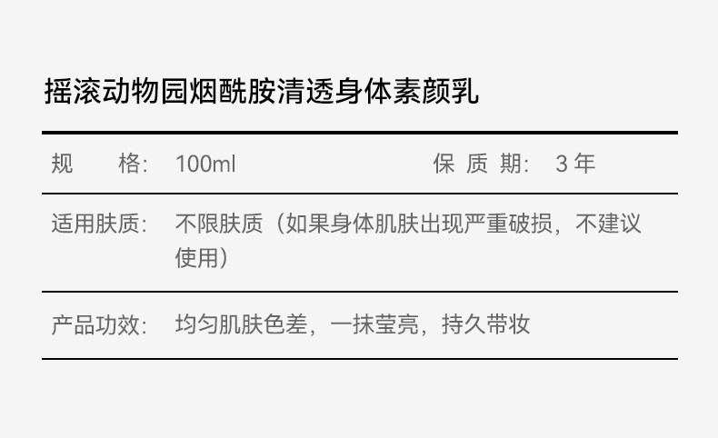 商品名称:摇滚动物园 身体素颜乳 100g