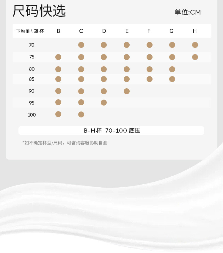 | 尺码 | 下胸围(cm) | 上胸围(cm) |