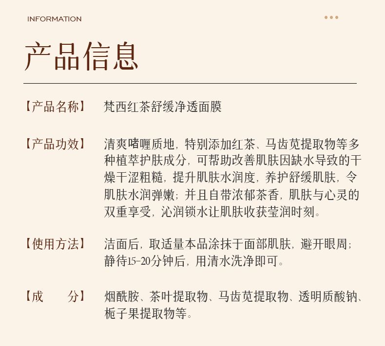 商品名称:FONCE/梵西 红茶舒缓净透面膜 120g