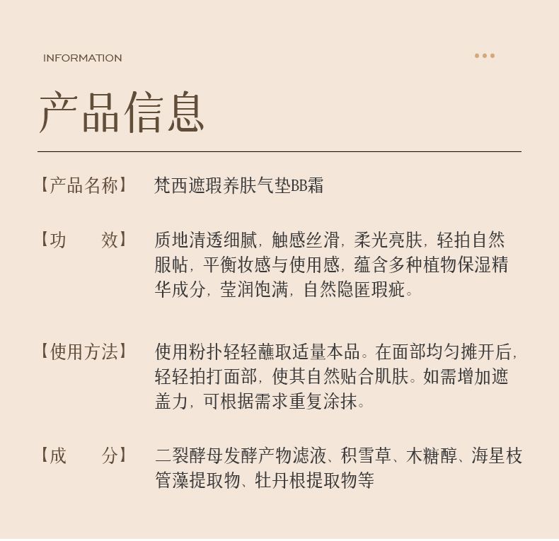 商品名称:FONCE/梵西 遮瑕养肤气垫BB霜 12g