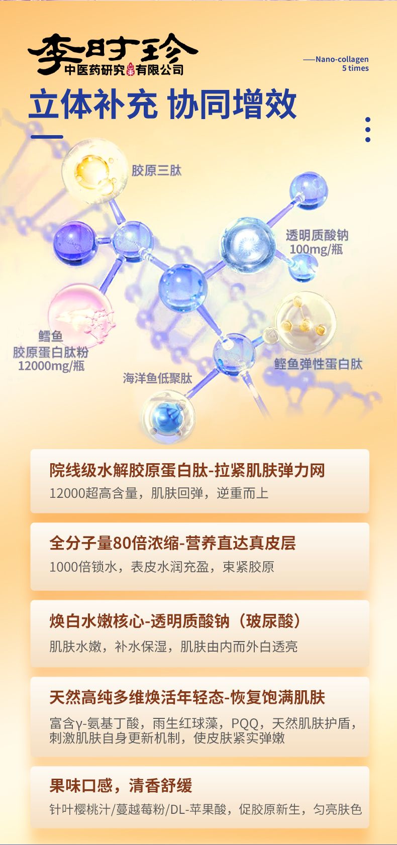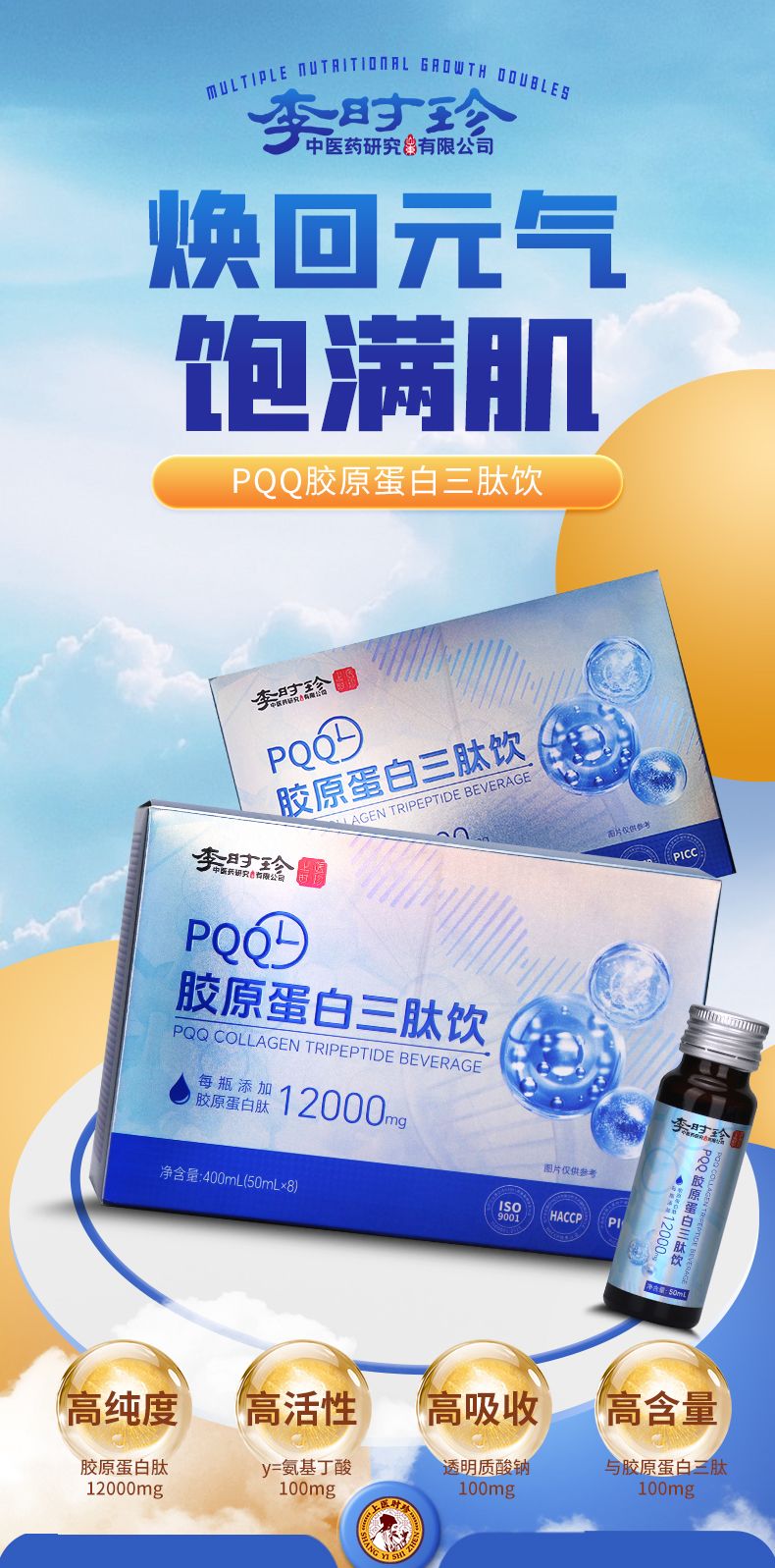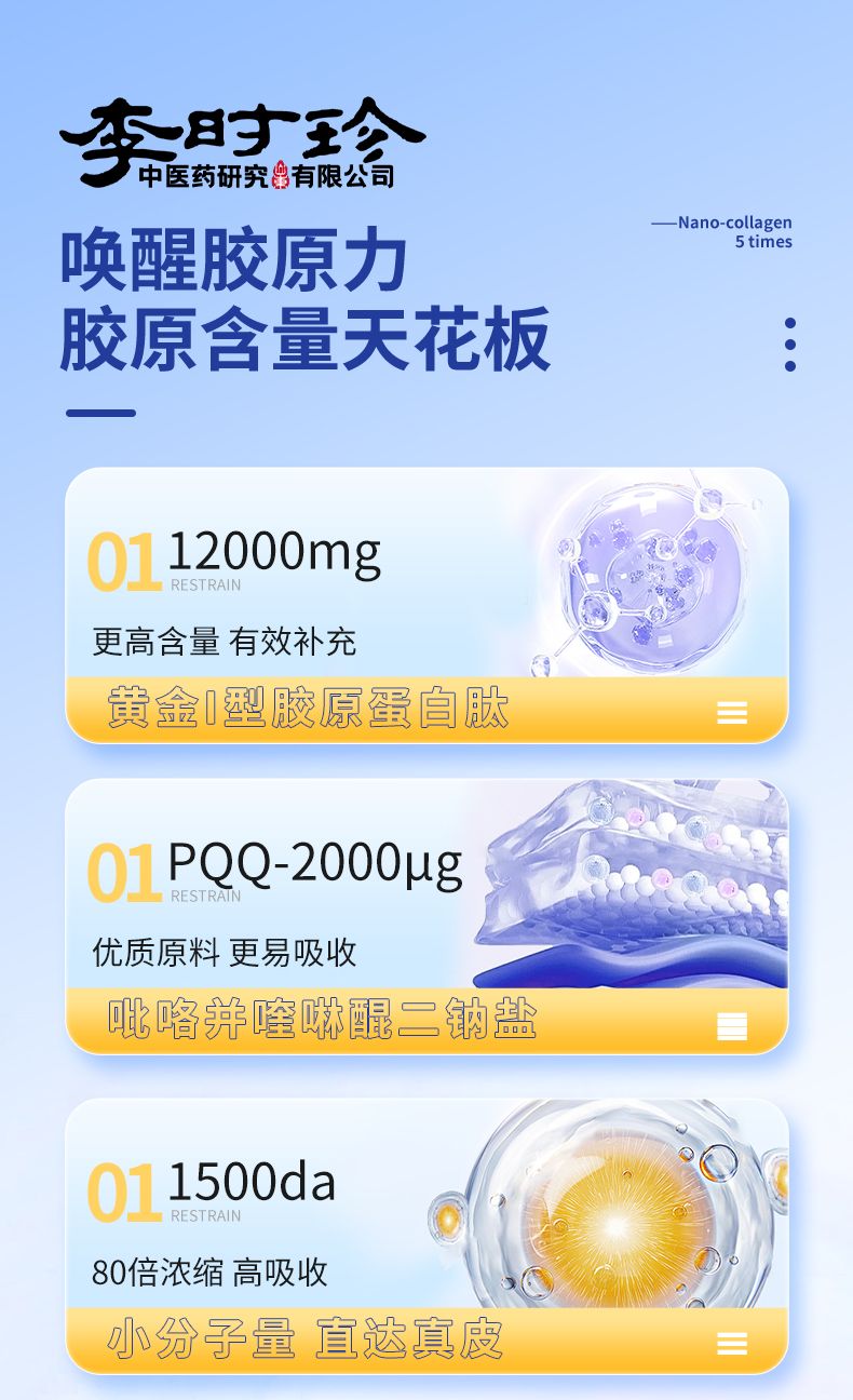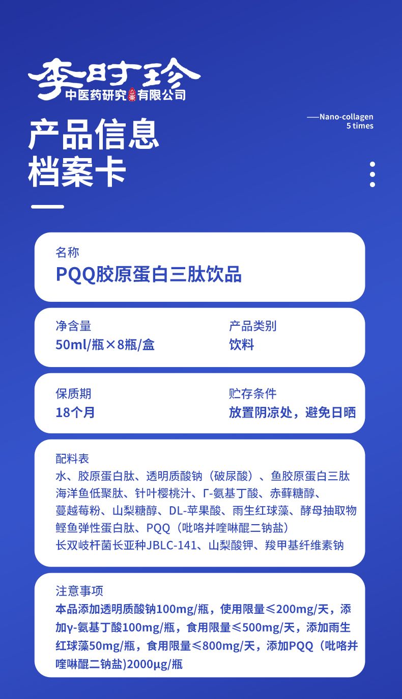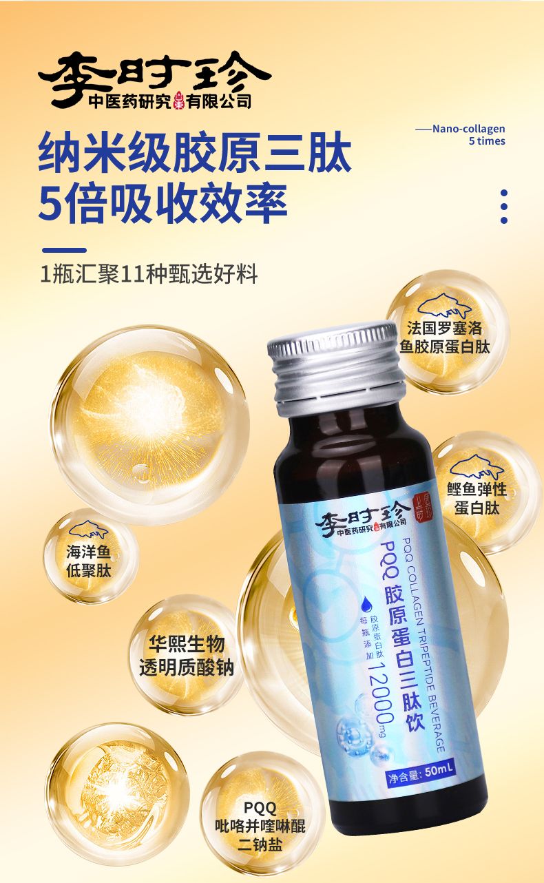商品名称:2盒李时珍PQQ胶原蛋白三肽饮果汁口感补充胶原蛋白内外养调