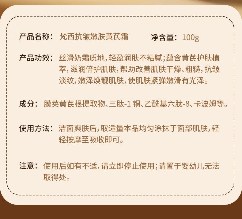 商品名称:FONCE/梵西 嫩肤黄芪霜面霜 100g