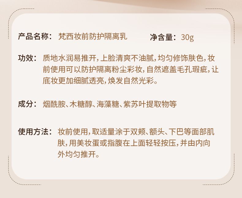 商品名称:FONCE/梵西 妆前防护隔离乳 30g