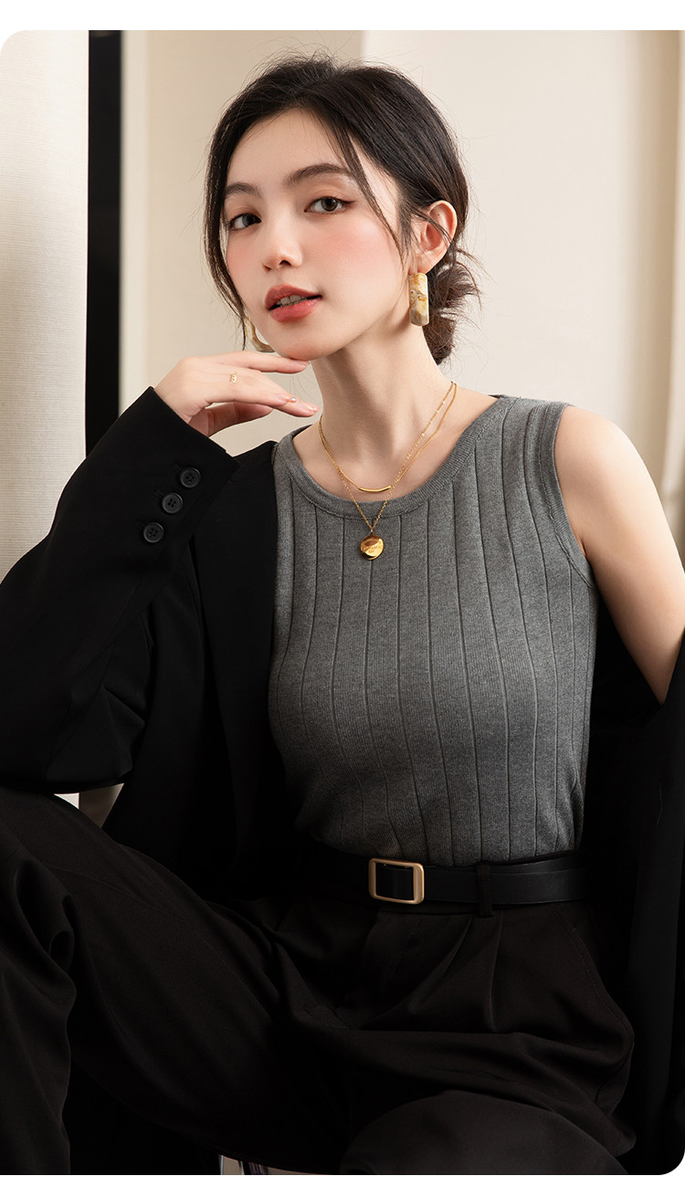 商品名称:【修身显瘦】宽肩带百搭打底针织衫上衣吊带背心内搭可外穿吊带女 197963