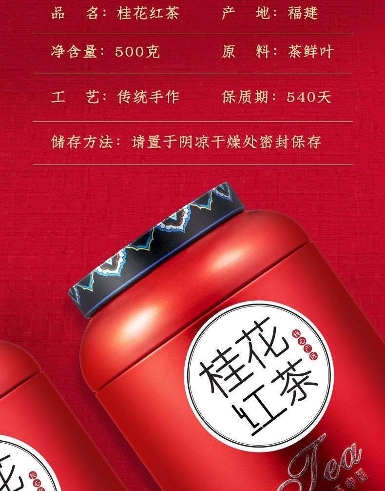 商品名称:小茶日记 浓香型桂花红茶正山小种 礼盒装500g