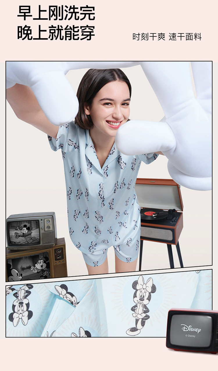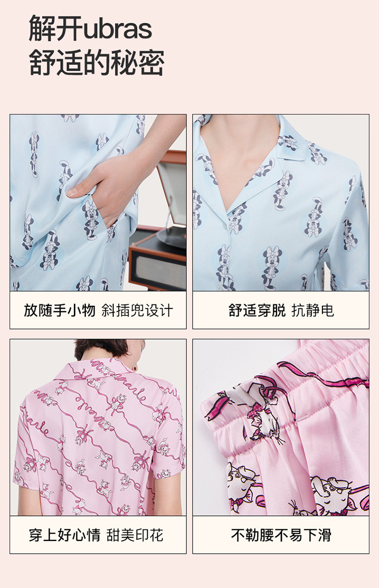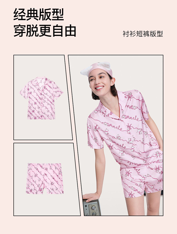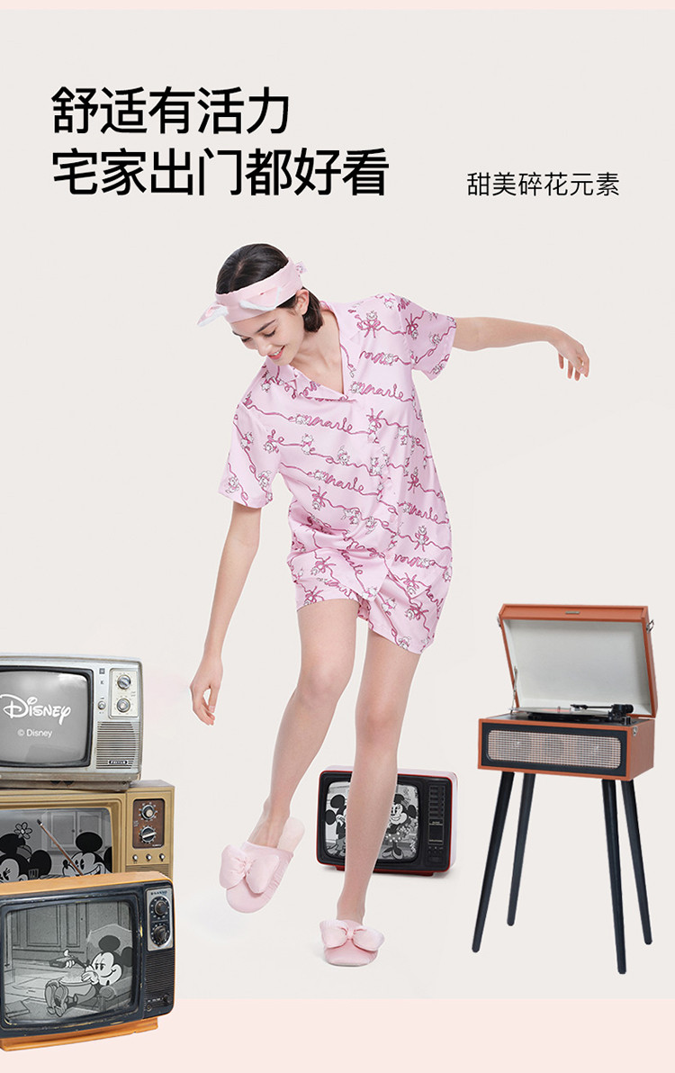 商品名称:【米奇玛丽猫系列】流光翻领短袖短裤家居服套装吸湿透气睡衣女 185664