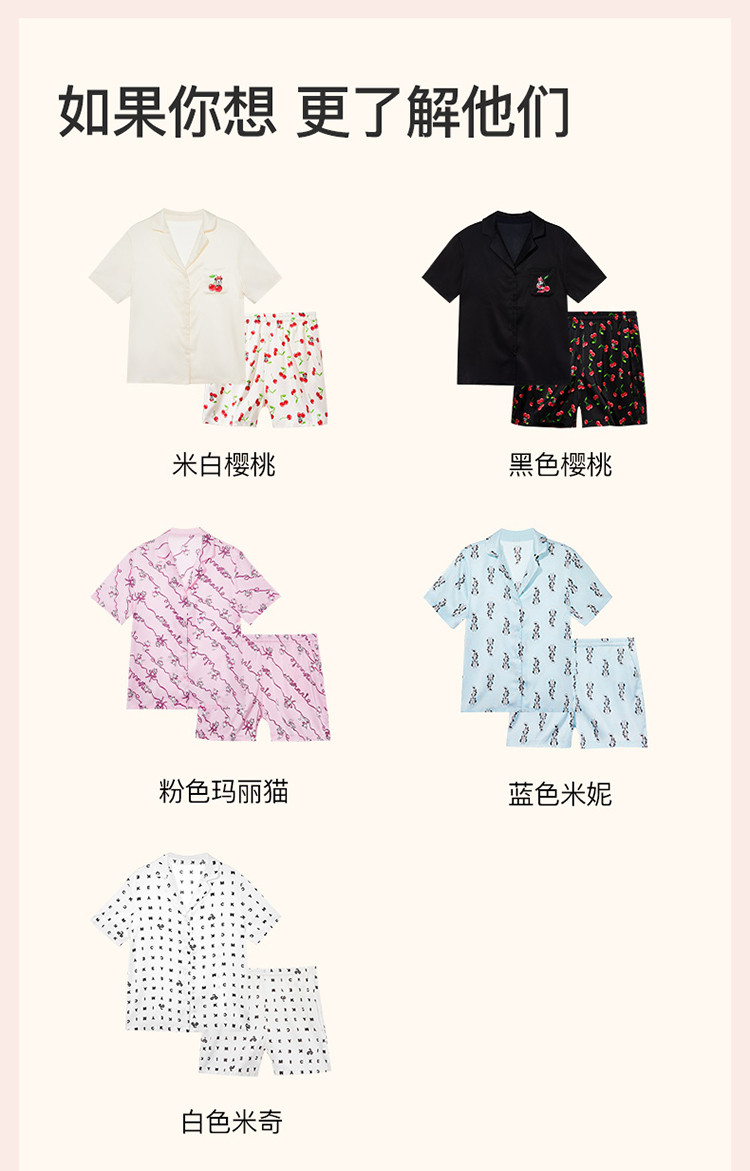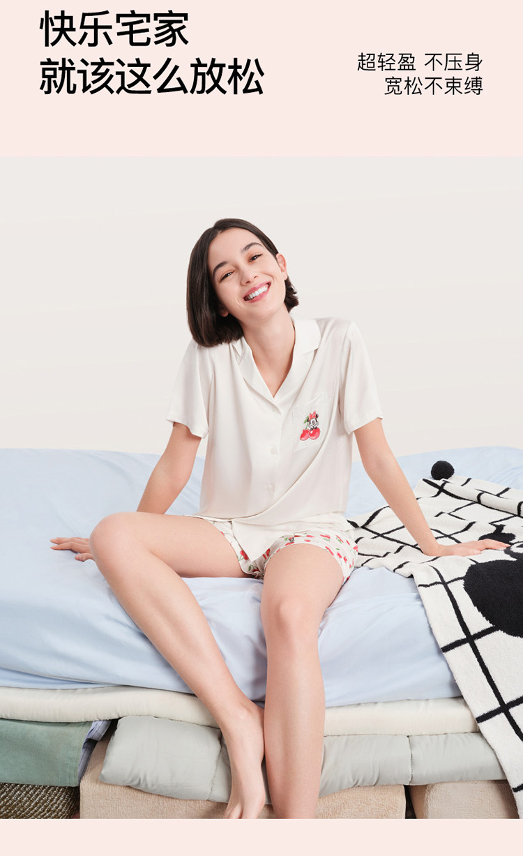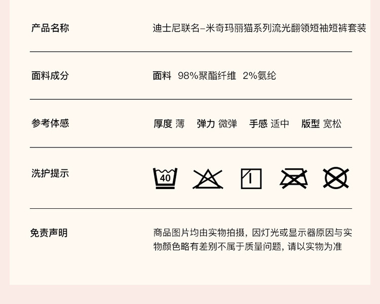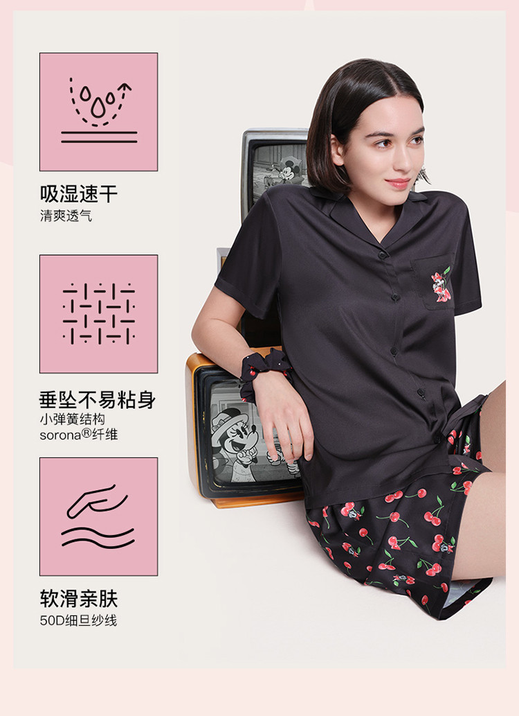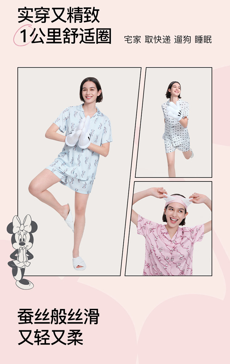 商品名称:【米奇玛丽猫系列】流光翻领短袖短裤家居服套装吸湿透气睡衣女 185664