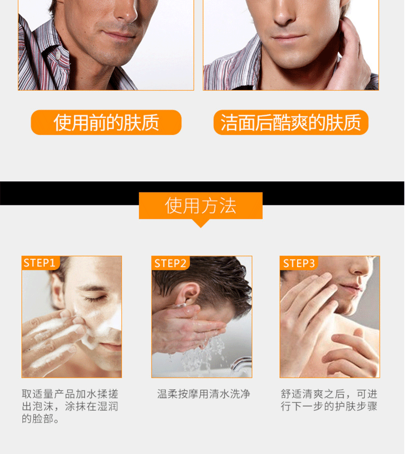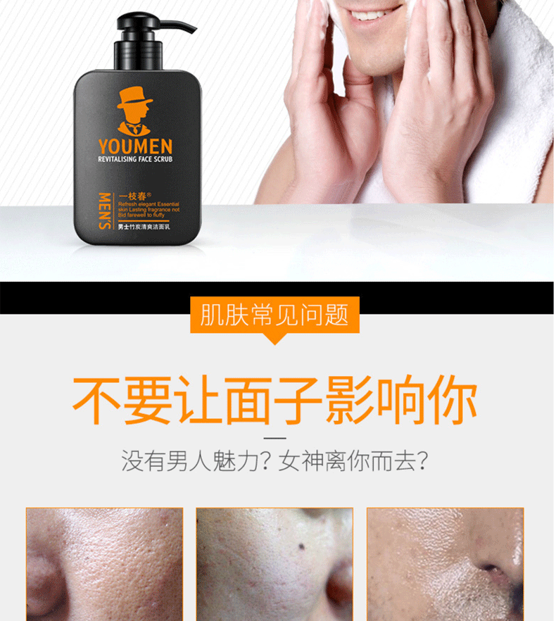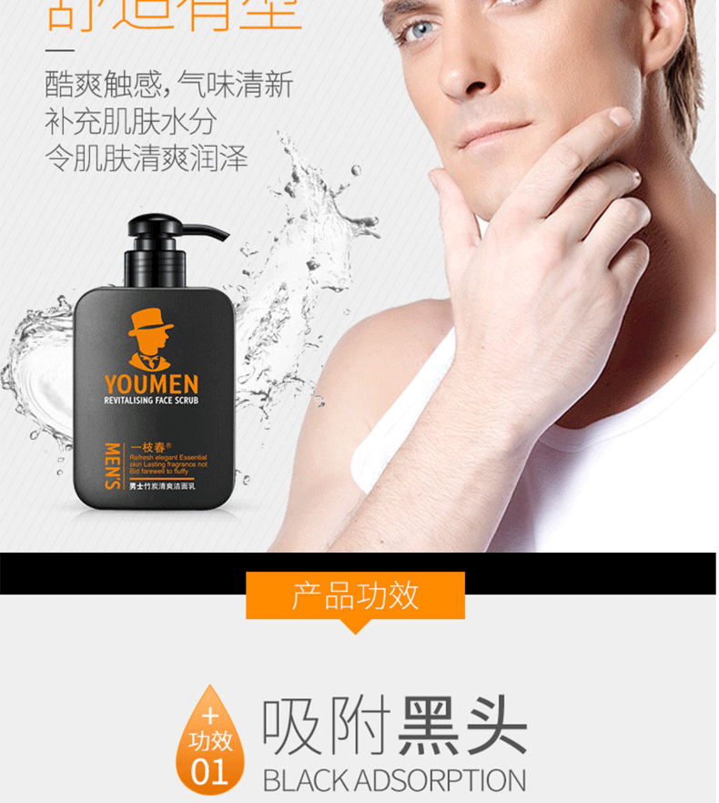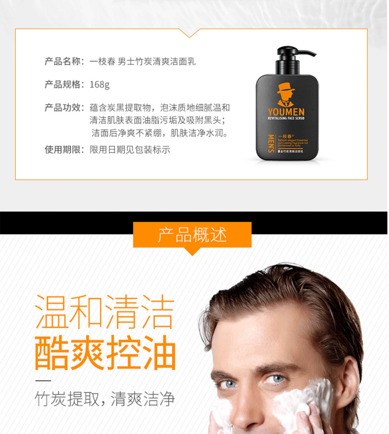 商品名称:一枝春男士竹炭清爽洁面乳 水润保湿洁净清爽 男士洗面奶 168g