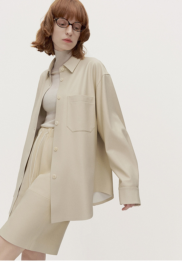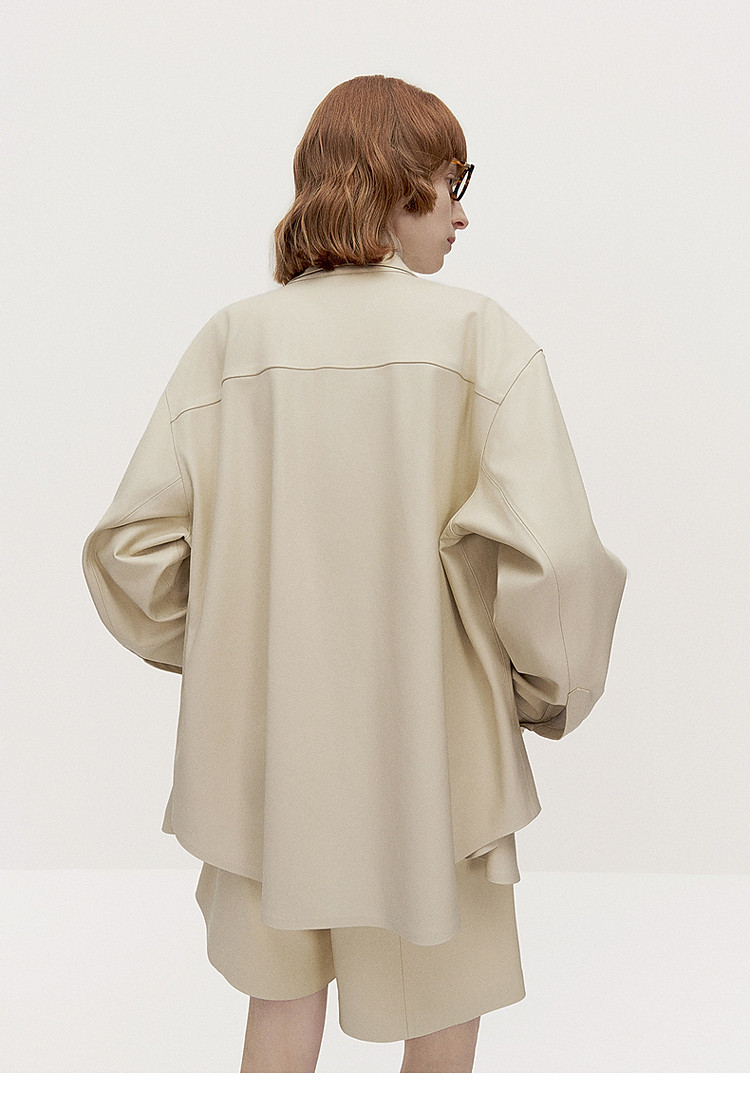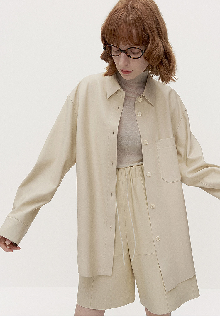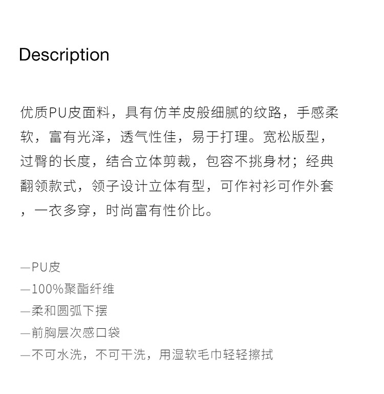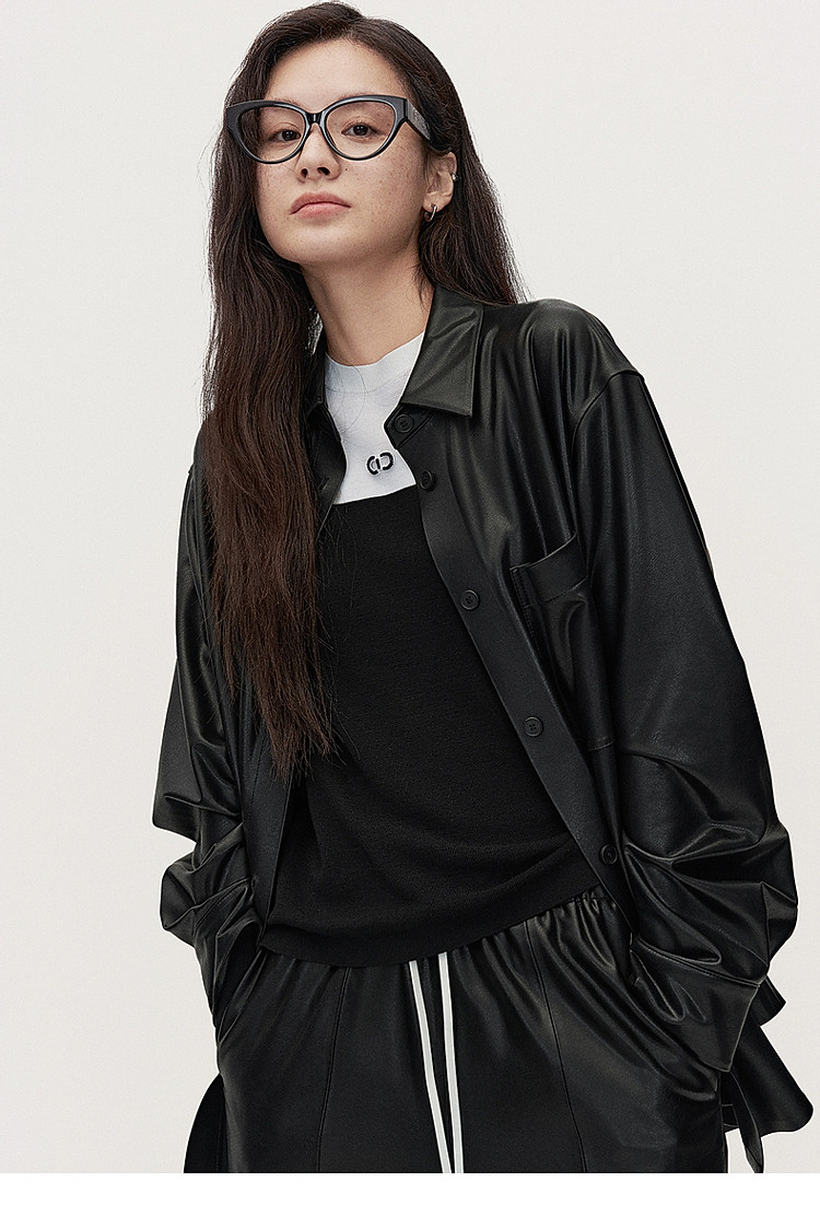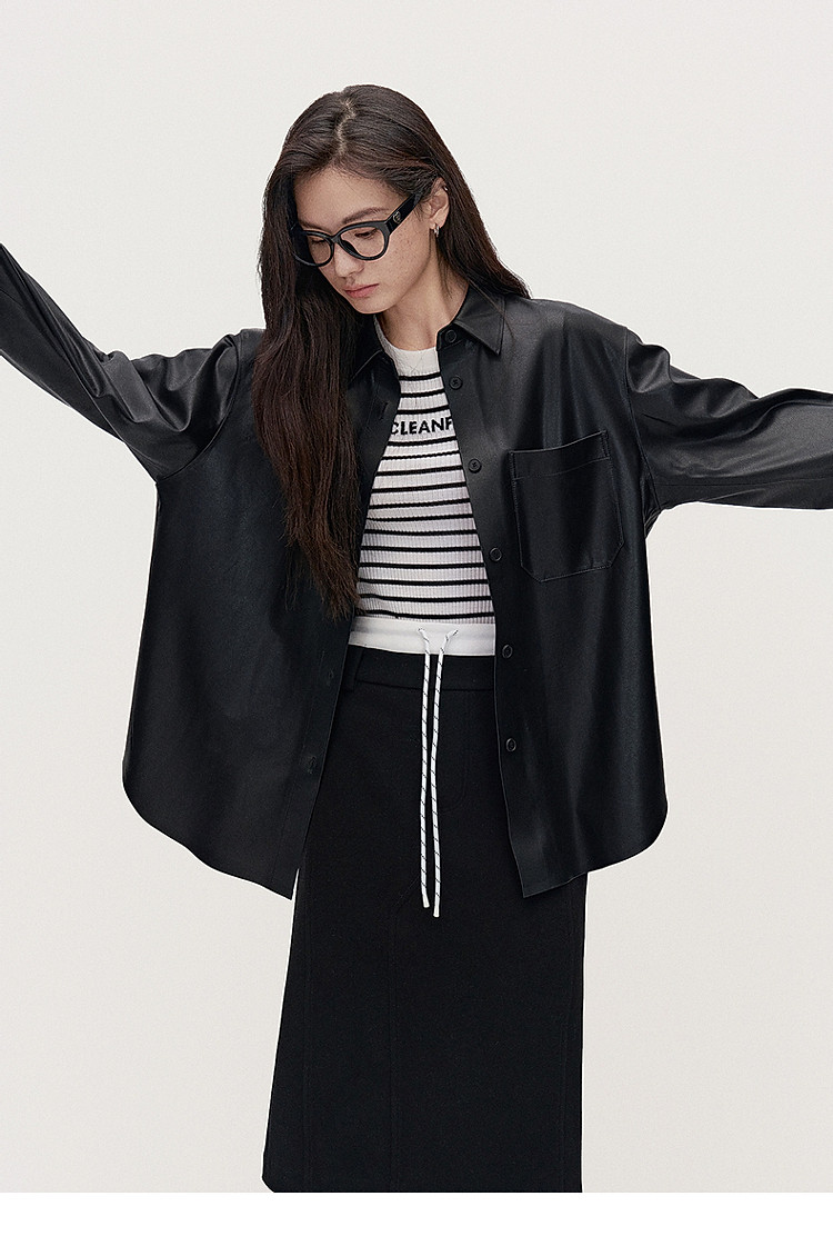 商品名称:春装 松弛感外套PU皮中长款宽松衬衫女 553359