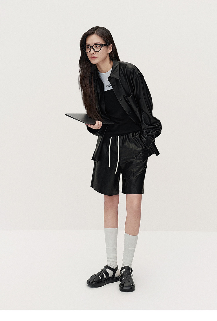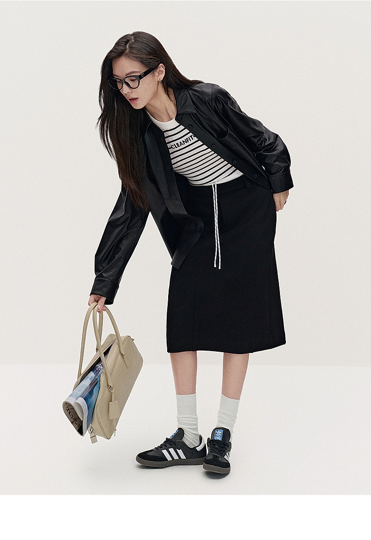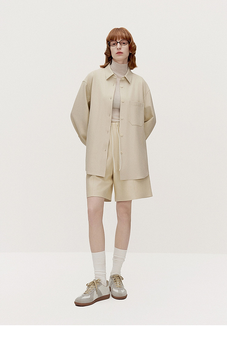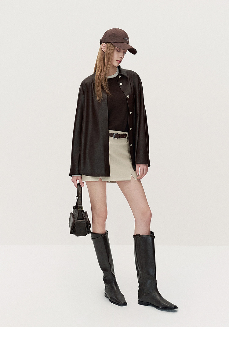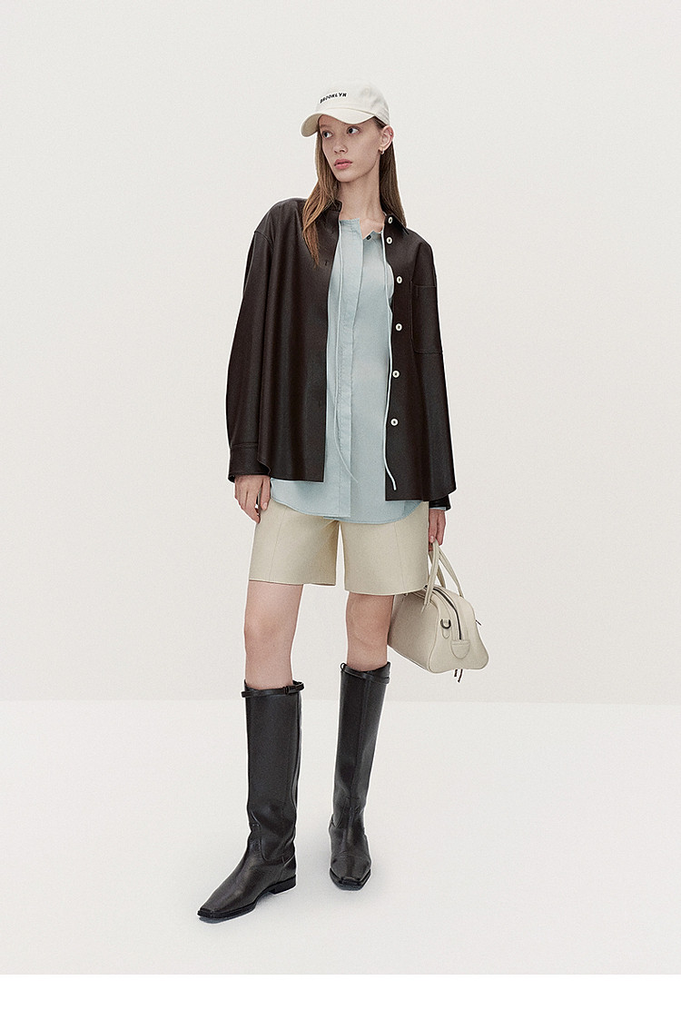 商品名称:春装 松弛感外套PU皮中长款宽松衬衫女 553359