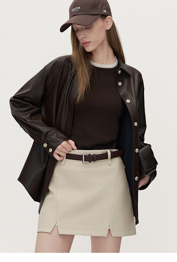 春装 松弛感外套PU皮中长款宽松衬衫女 553359