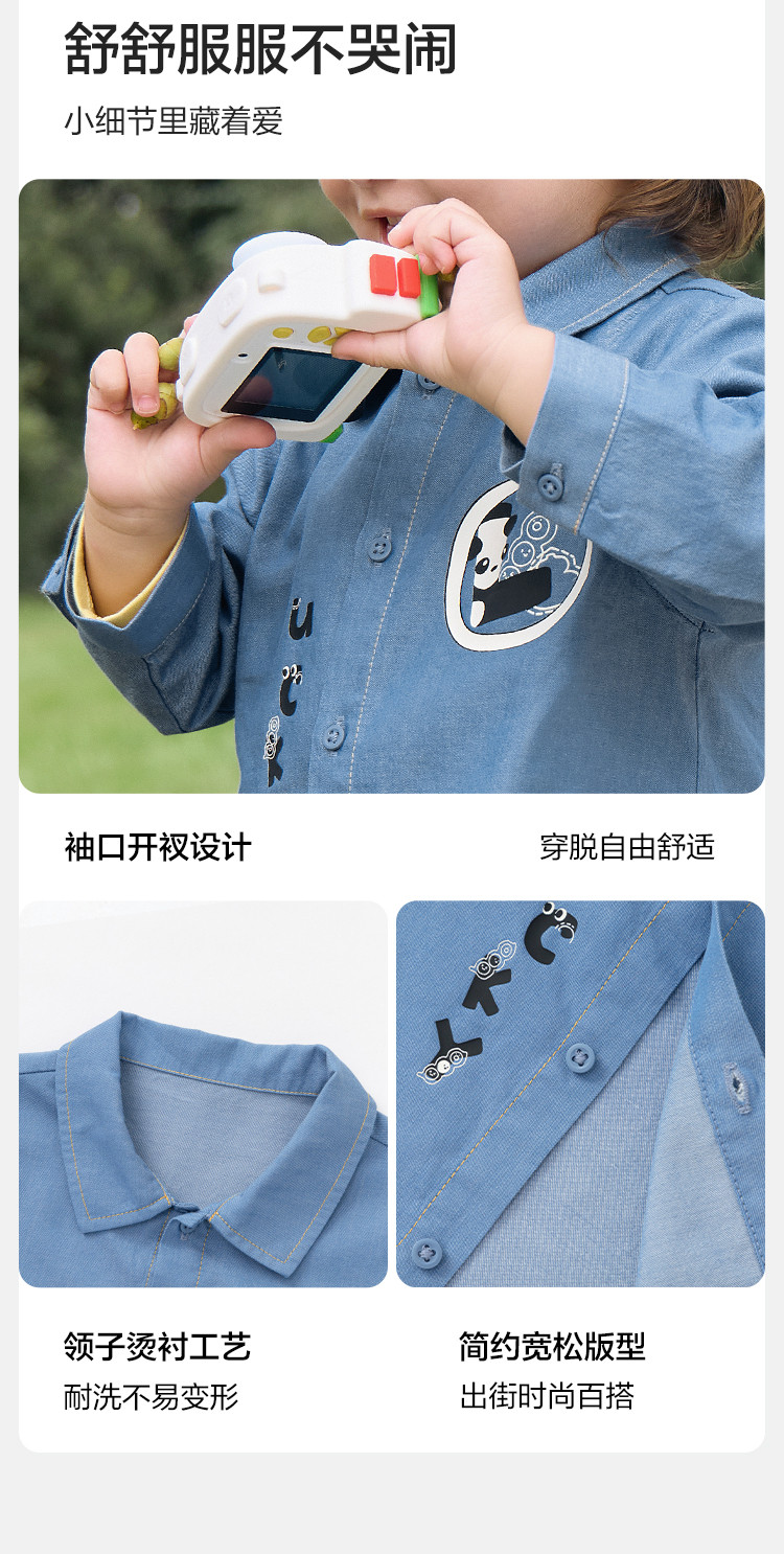 商品名称:印花刺绣婴幼长袖衬衫童装男童上衣外套2025新款春装宝宝潮酷 223813