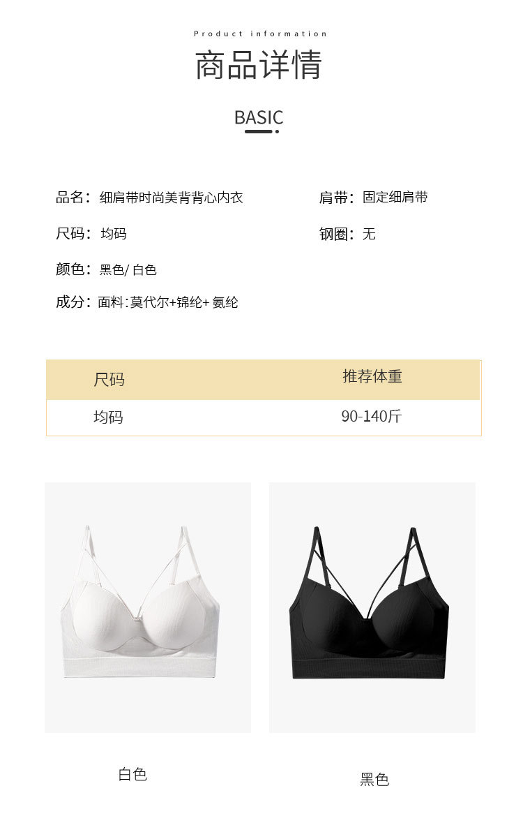商品名称:【2025新款细肩带美背】性感时尚简约带胸垫背心内搭内衣文胸 007838