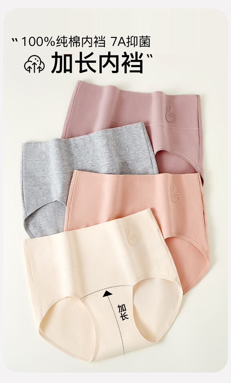【100%棉加长裆】4条装7A抑菌裆高腰收腹女士内裤女短裤衩 901387