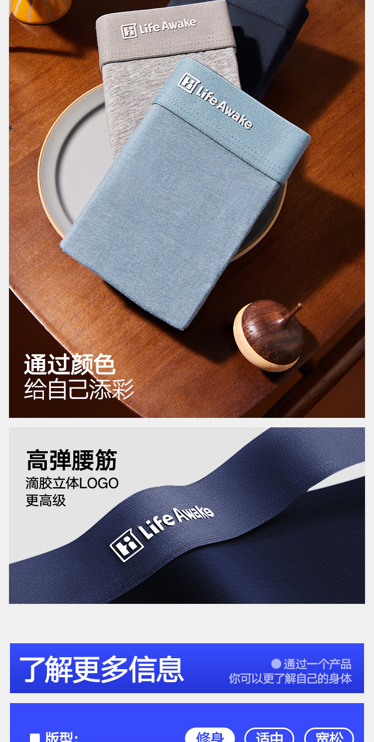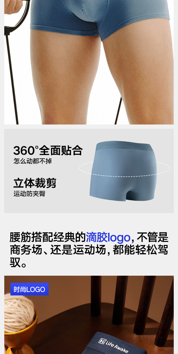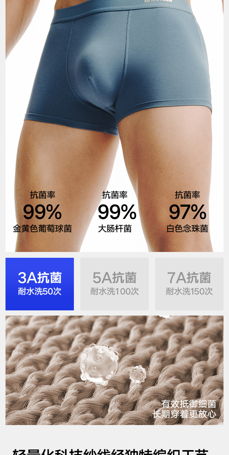 【冰丝无痕 裸感透气】3条装男士内裤平角夏季薄款抑菌四角短裤 515354