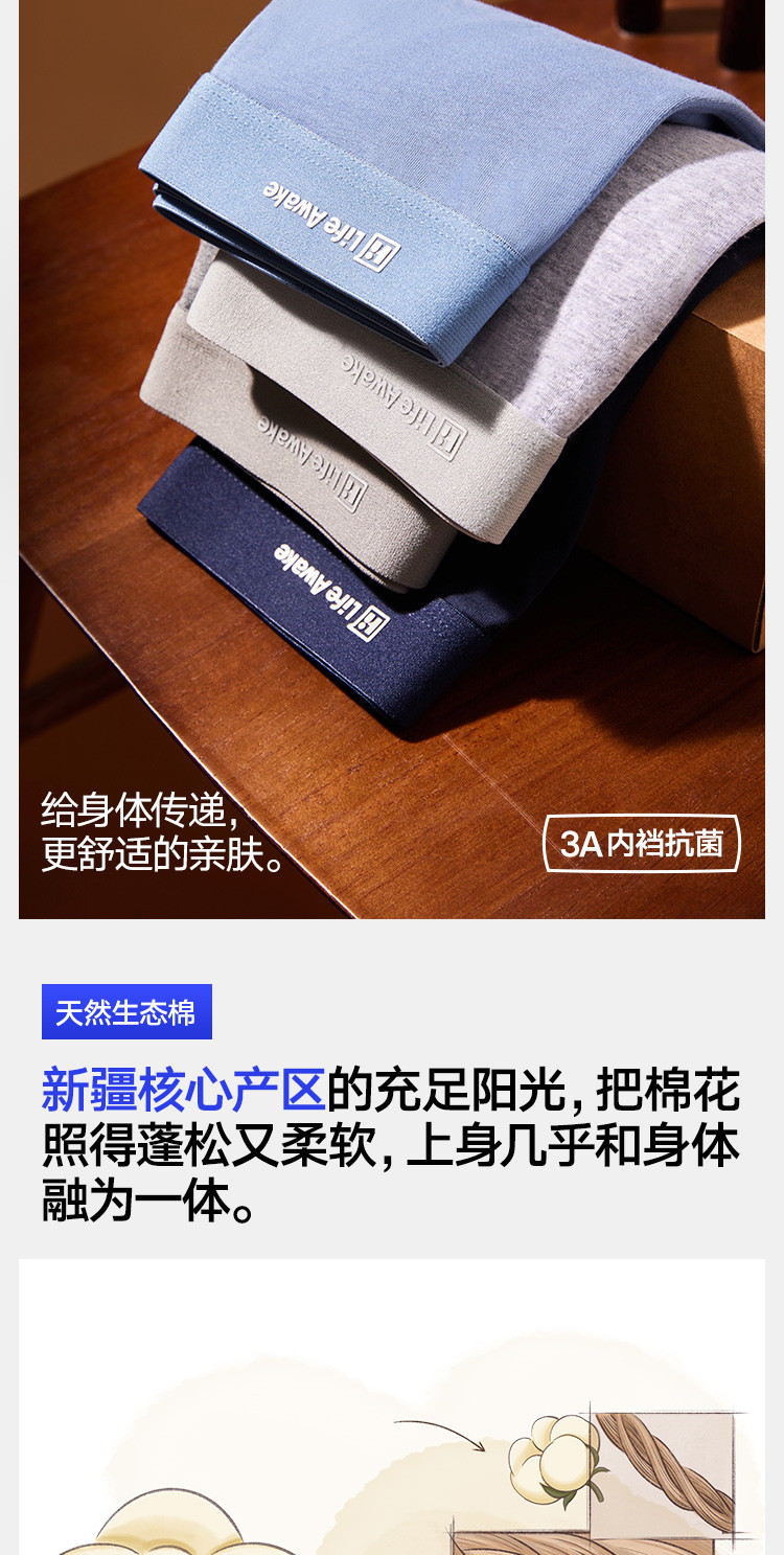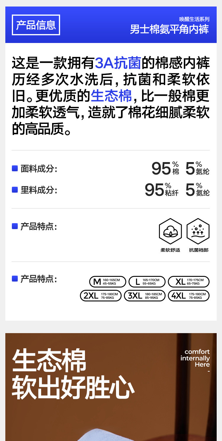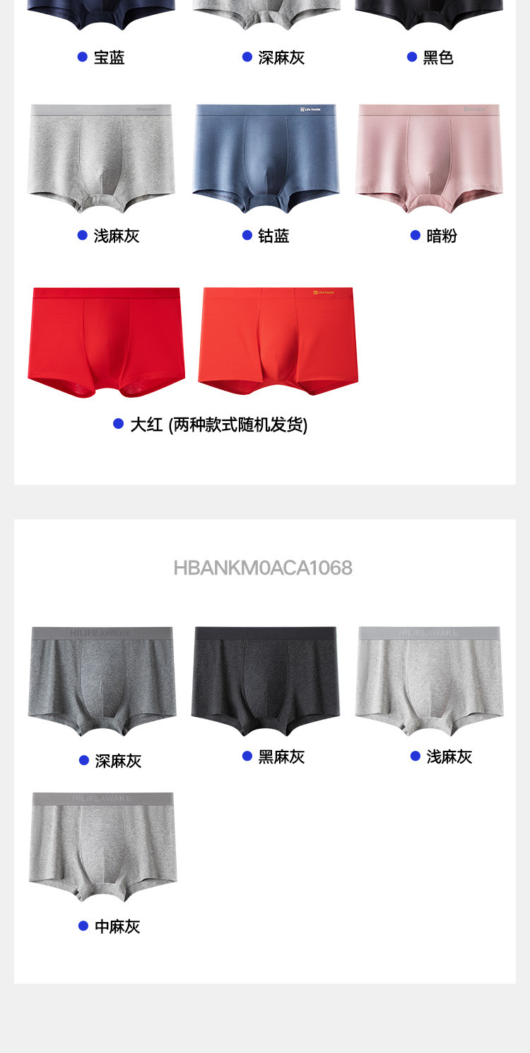 商品名称:【95%棉 抑菌裆】4条装男士内裤夏季透气高端平角四角短裤衩 923354
