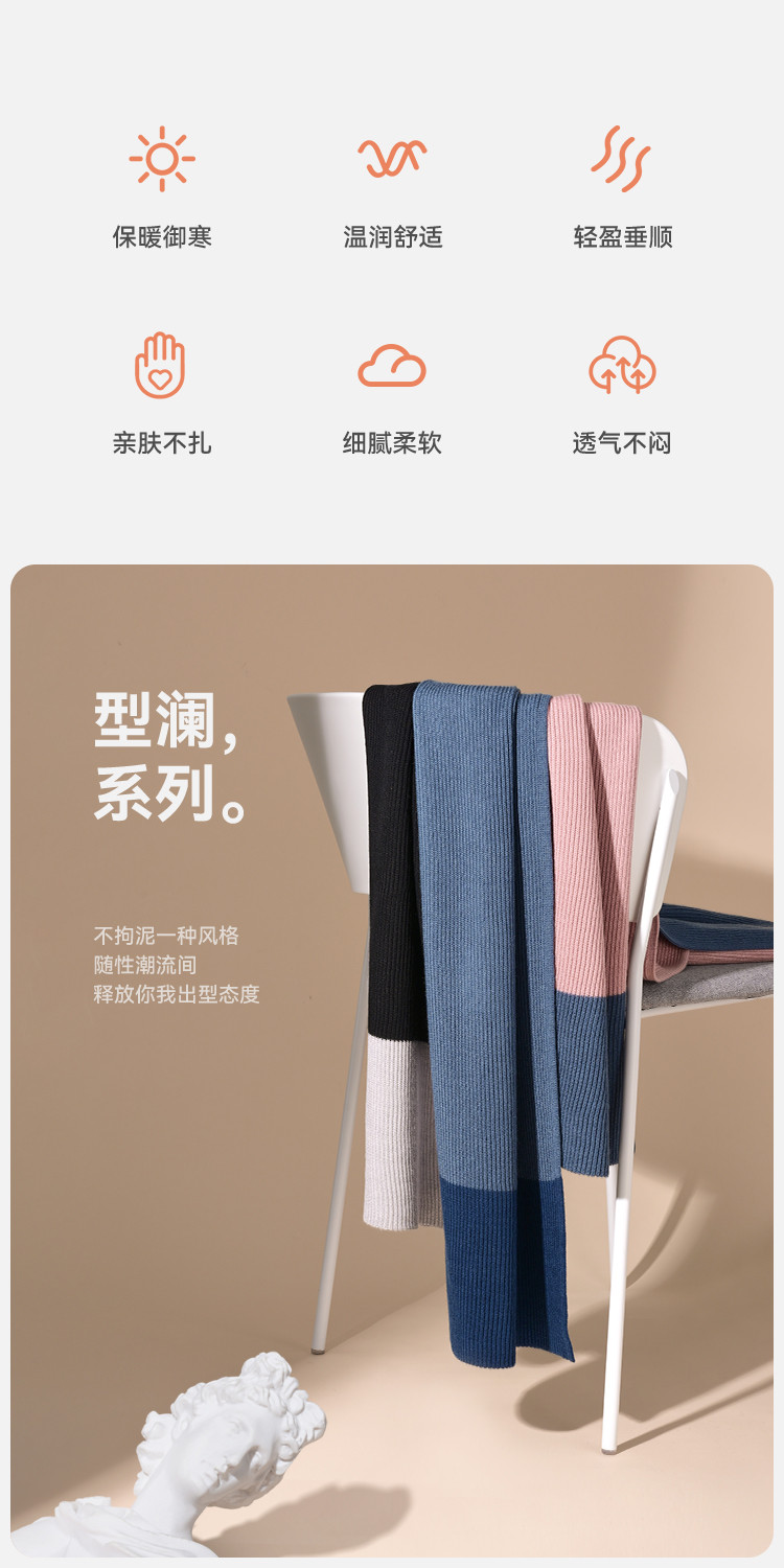 商品名称:秋冬情侣款拼色围巾柔软舒适高级百搭休闲保暖骑行防风防寒送爱人 324054