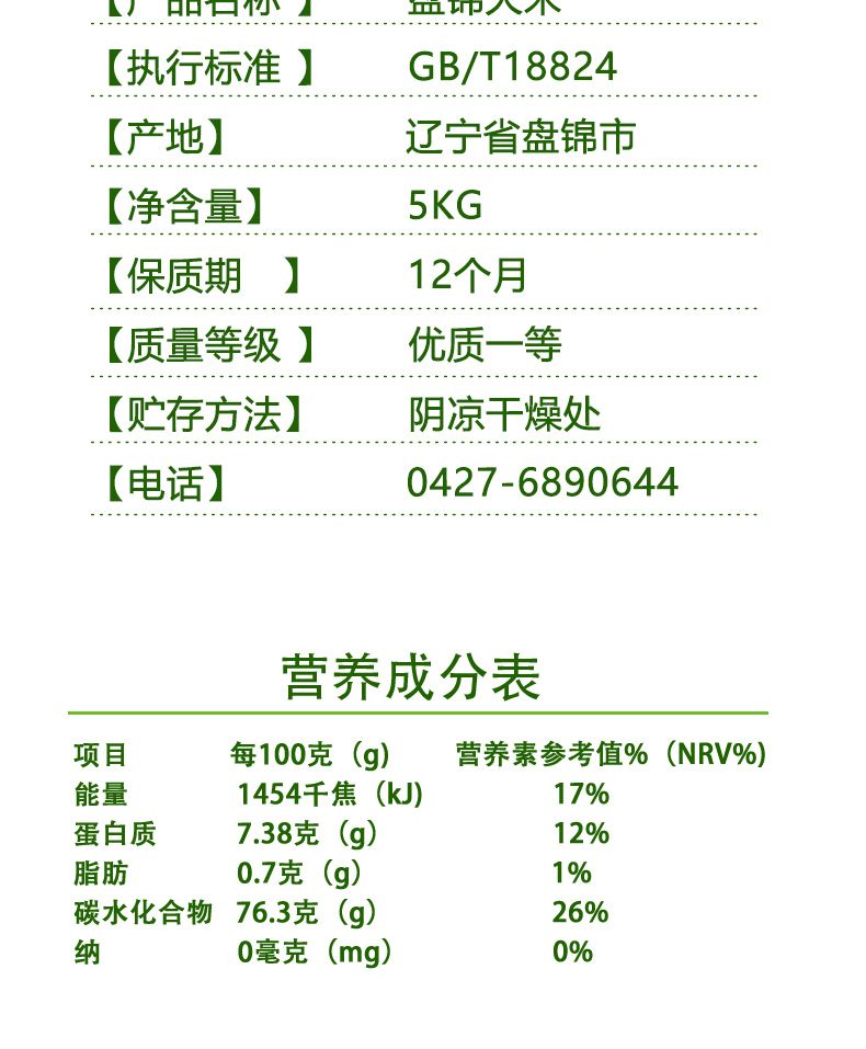 商品名称:锦阳 盘锦大米绿色食品优级蟹田大米真空装2.5kg