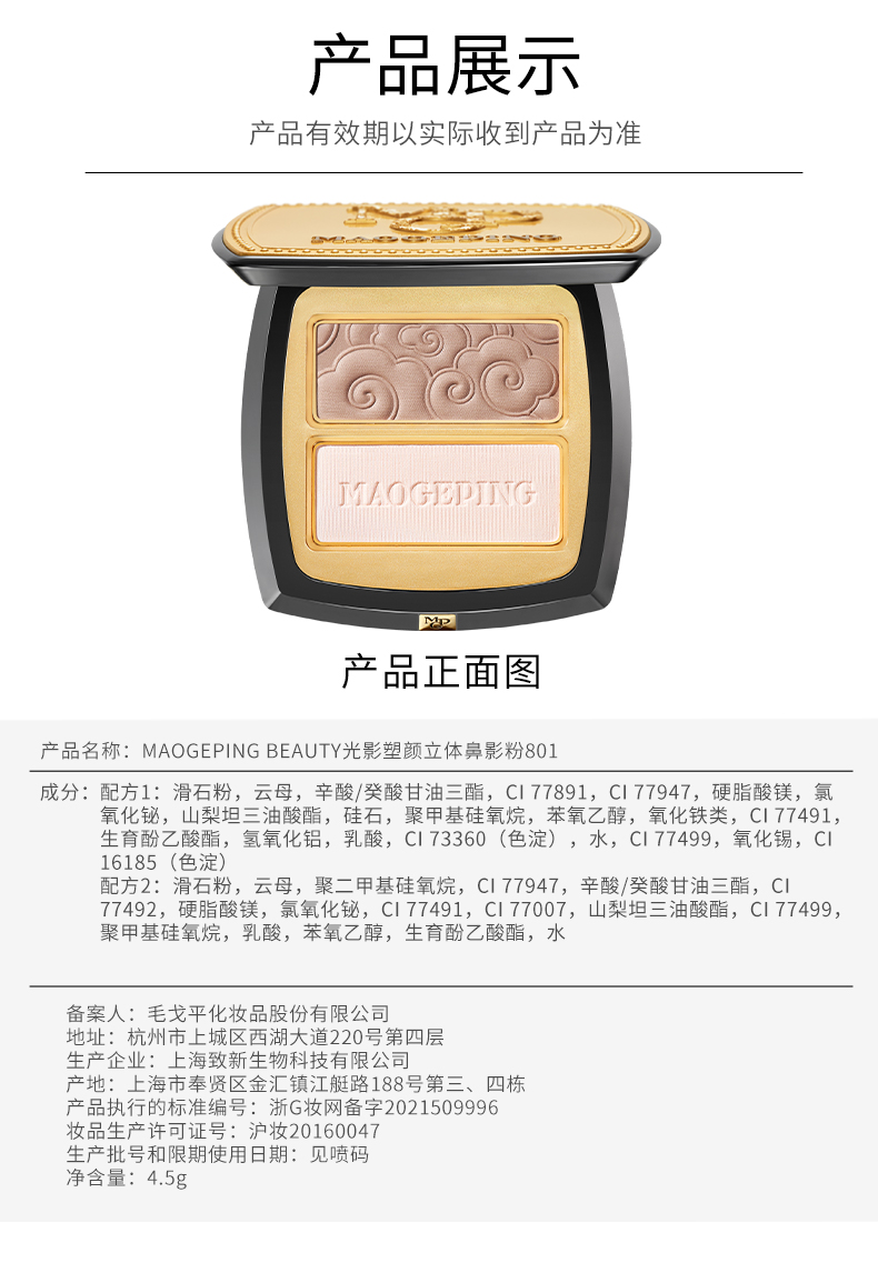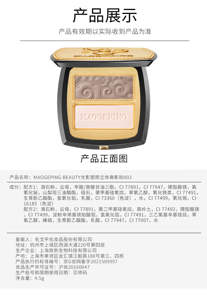 商品名称:Mgpin/毛戈平 光影塑颜立体鼻影粉自然修容哑光高光阴影双色一体盘 4.5g