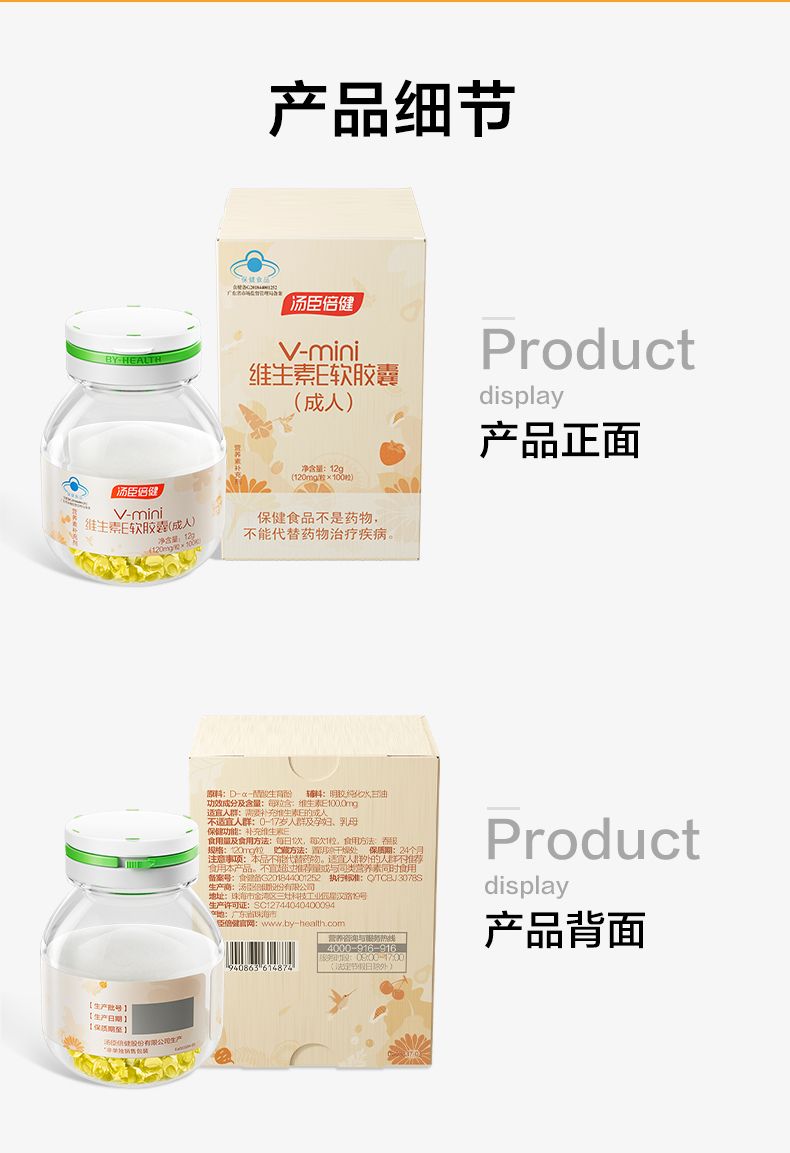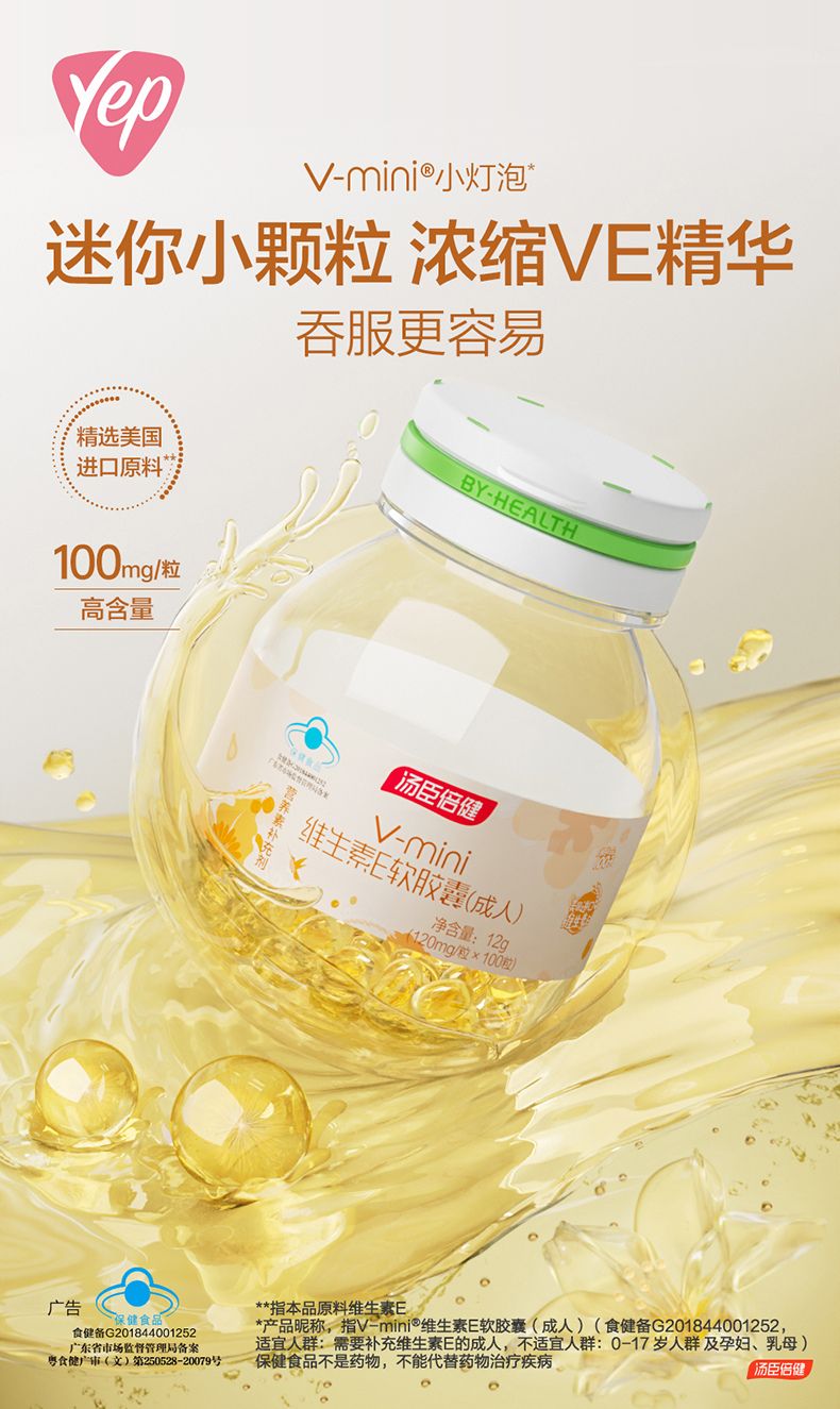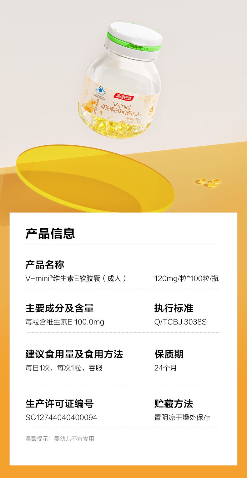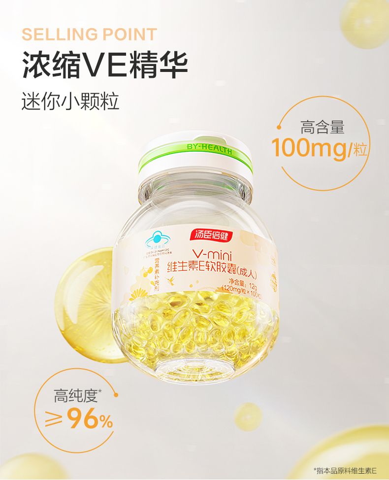商品名称:汤臣倍健mini维生素E软胶囊(成人)(100粒)*2瓶 滋润护肤