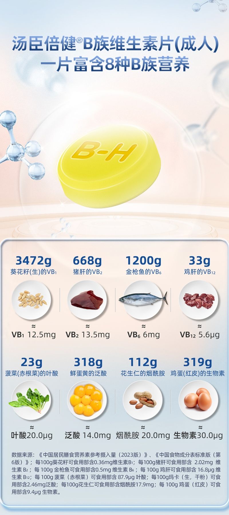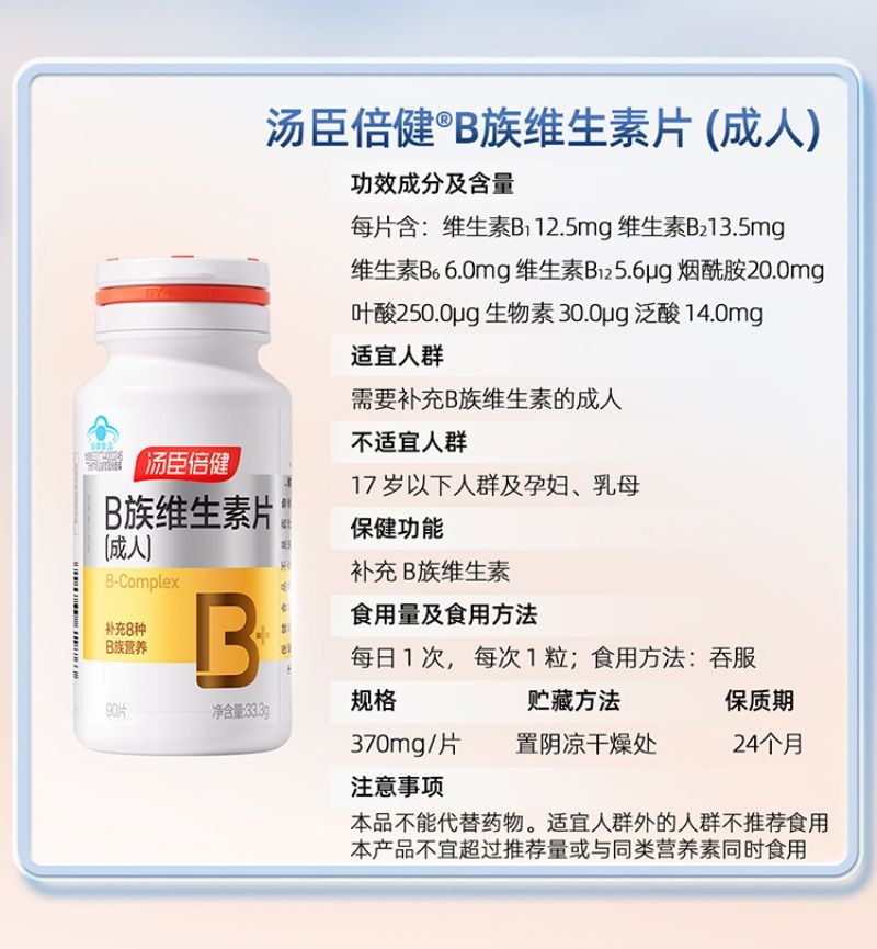 商品名称:汤臣倍健维生素B族片90片*1瓶 复合维生素含b12b2b6烟酰胺成人b族 非泡腾