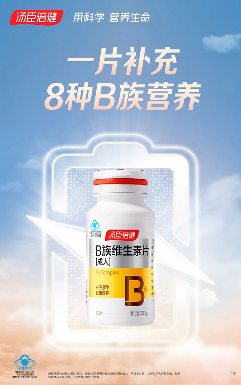 汤臣倍健维生素B族片90片*1瓶 复合维生素含b12b2b6烟酰胺成人b族 非泡腾
