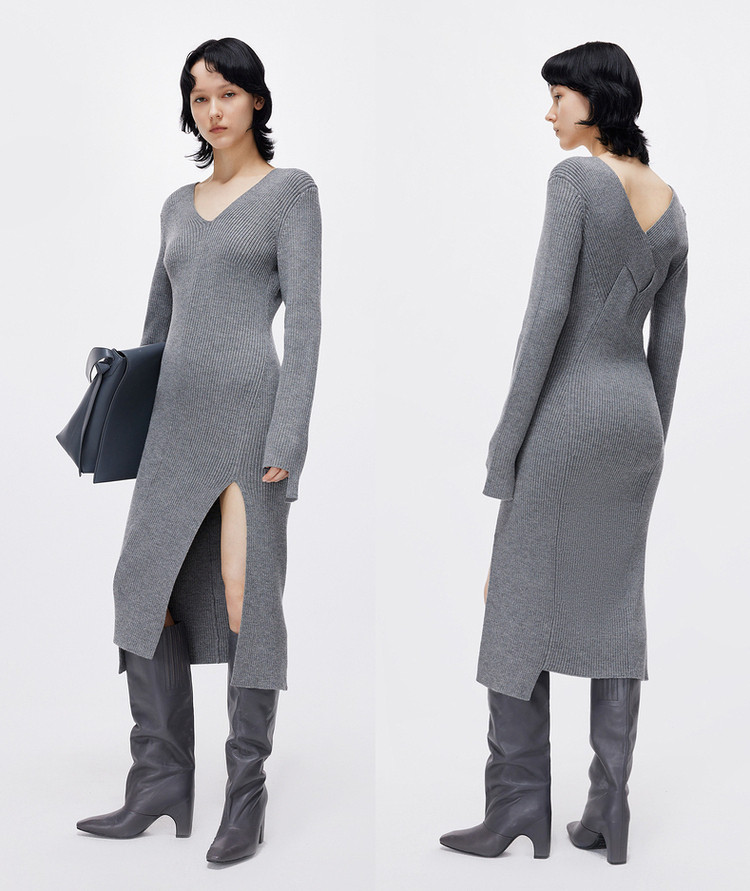 秋连衣裙开叉修身裙子女 707531