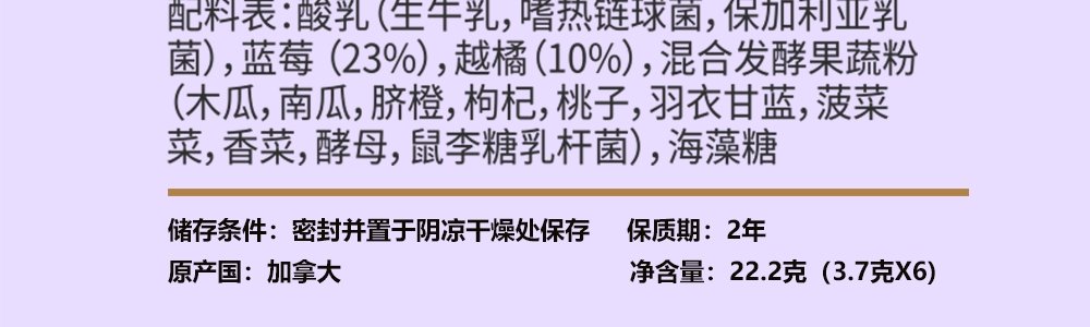 商品名称:上哆力 SunDrench冻干水果酸奶块(蓝莓&越橘)22.2g
