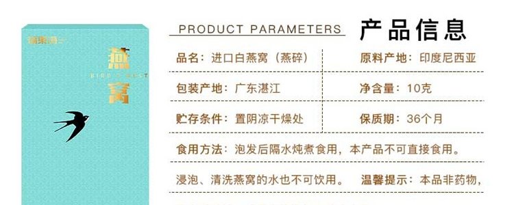 商品名称:【福东海】燕窝 10克 实惠盒装