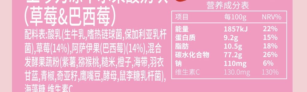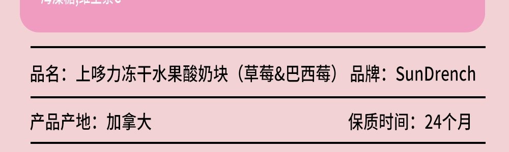 商品名称:上哆力SunDrench 冻干水果酸奶块(草莓&巴西莓)22.2g