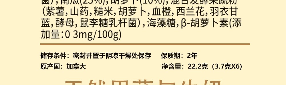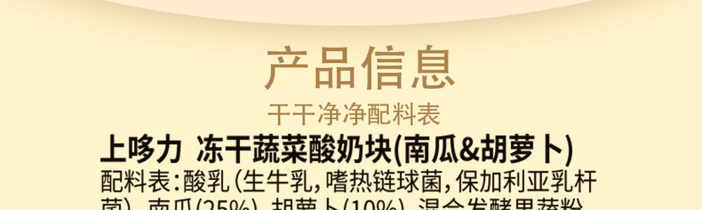 商品名称:上哆力 SunDrench 冻干蔬菜酸奶块(胡萝卜&南瓜)22.2g
