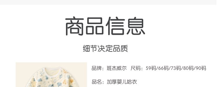 商品名称:班杰威尔 加厚婴儿连体衣秋冬季对开纯棉无骨宝宝哈衣 73cm 加厚大蓝熊
