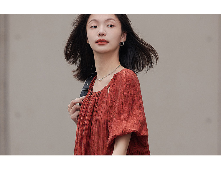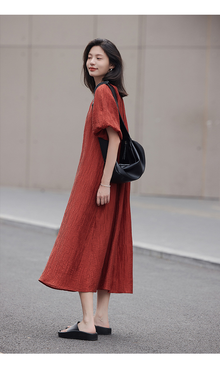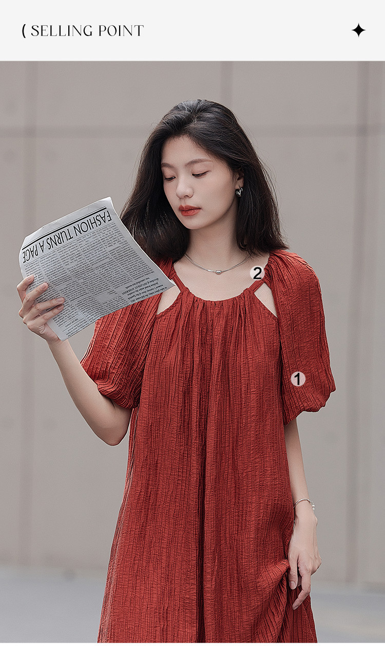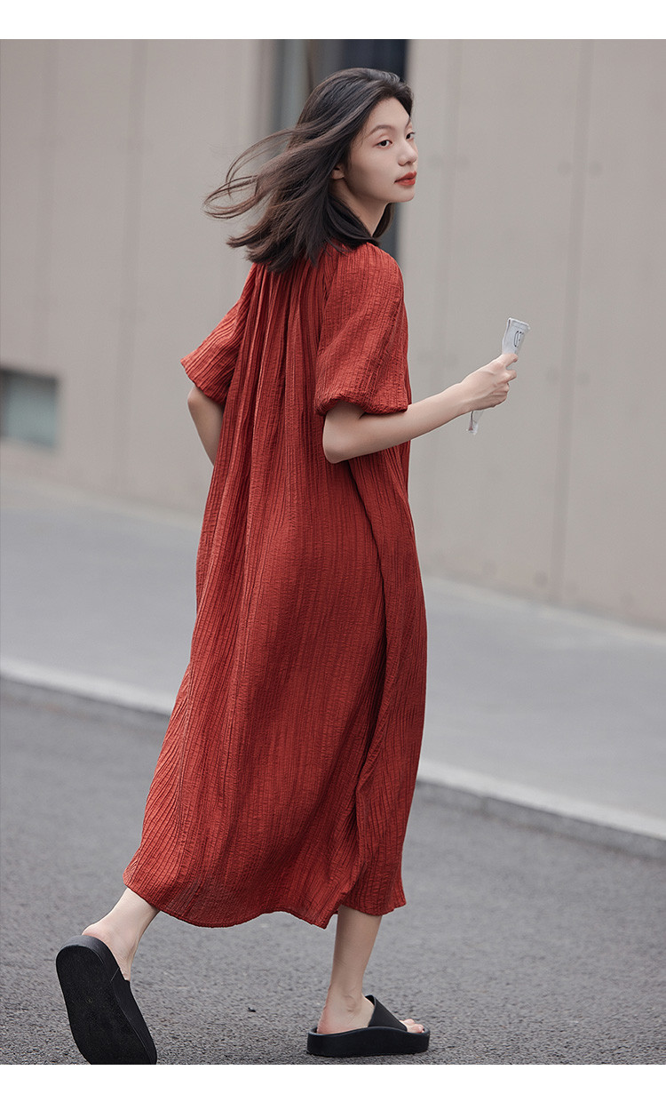 商品名称:【肌理感连衣裙】夏款圆领镂空设计泡泡袖宽松长款连衣裙女 650050