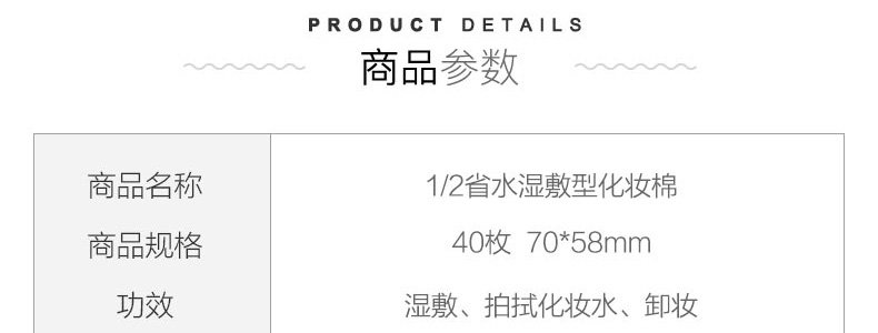 商品名称:日本 尤妮佳( Unicharm)超省水1/2化妆棉 40枚