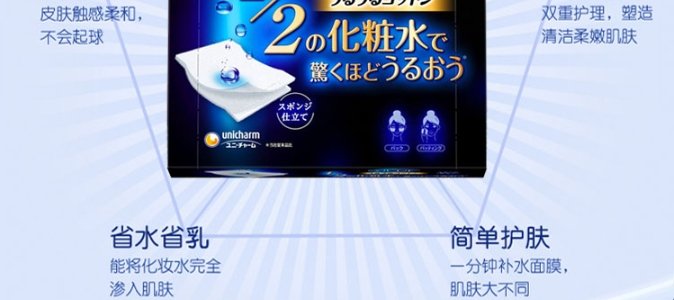 日本 尤妮佳( Unicharm)超省水1/2化妆棉 40枚